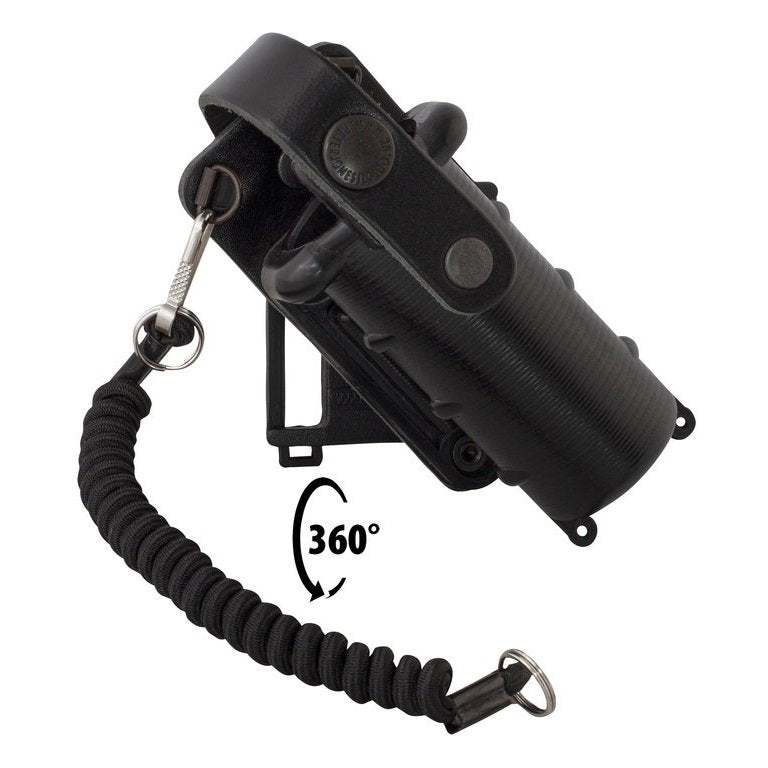 PETER JONES P175 Gr. M, 360° drehbar, stabiles Sprayholster aus hochwertigem Kunststoff ist die ideale Lösung für das sichere Tragen von Abwehrspraydosen mit einem Durchmesser von 38 mm. 360° drehbar und in 12 Positionen arretierbar, bietet es maximale Flexibilität und schnellen Zugriff auf das Spray. Die offene Konstruktion erlaubt es, das Spray einfach nach oben herauszuziehen, nachdem die Sicherungslasche mit Druckknopf gelöst wurde. Dank der Sicherungslasche und einer Fangleine bleiben Holster und Spraydose zuverlässig beisammen.