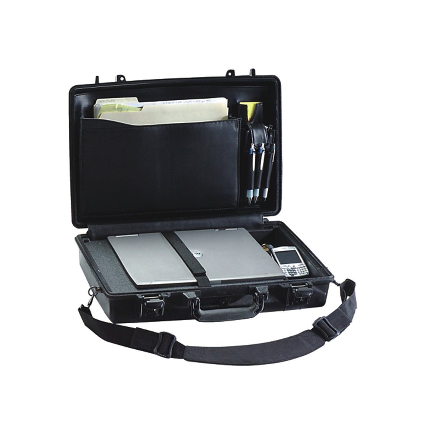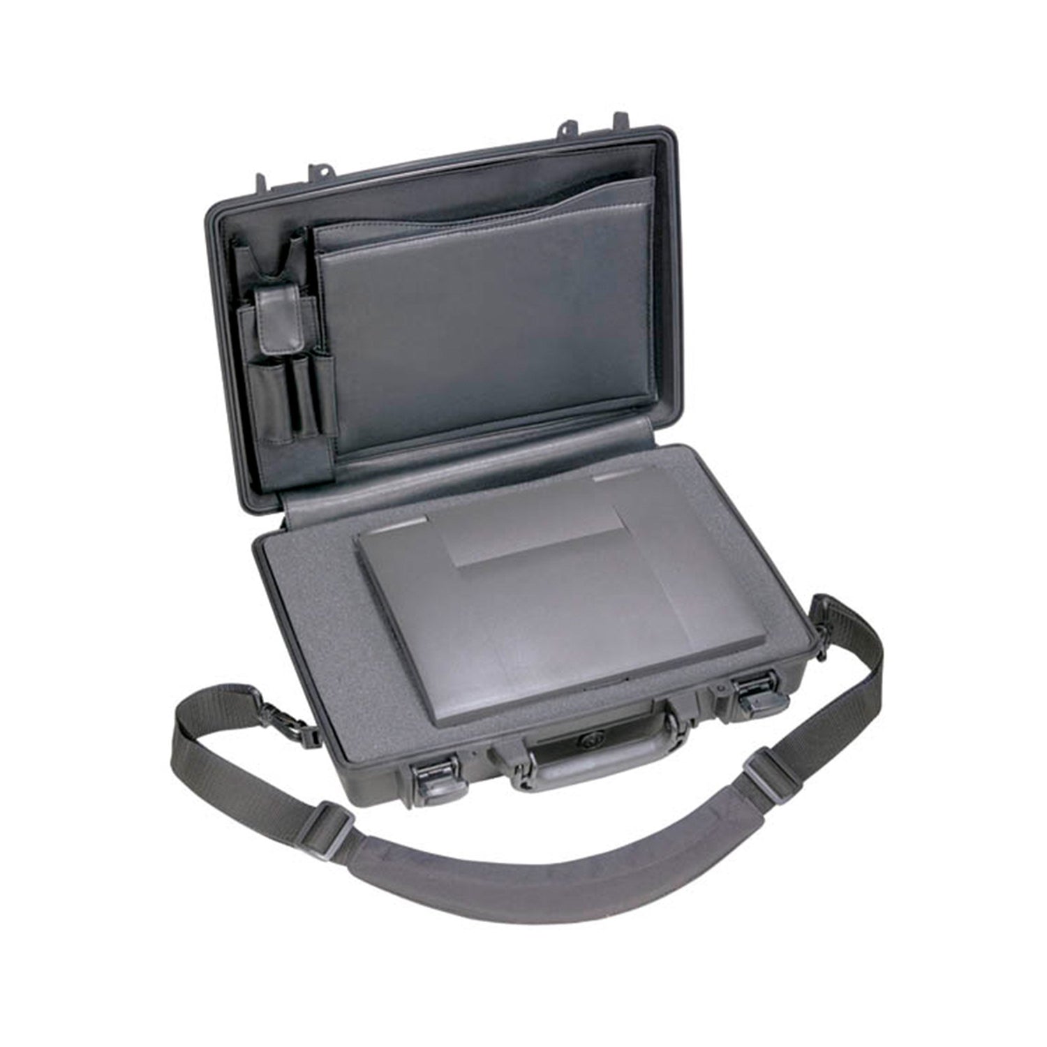 Peli Koffer 1490CC#2 Standard ist ein robustes und sicherheitsgerechtes Gehäuse, das sich perfekt zum Aufbewahren und Transportieren von Laptops und entsprechendem Zubehör eignet. Es wurde mit höchstem Qualitätsanspruch aus besonders widerstandsfähigem Material hergestellt. Daher gewährleistet dieser Koffer einen dauerhaften Schutz und eine verlässliche Sicherheit für Ihren Laptop. Mit seinen Außenabmessungen von 50.47 x 35.38 x 11.89 cm und den Innenabmessungen von 45.09 x 28.88 x 10.46 cm bietet der Koffer genügend Platz und sorgt dabei für den sicheren Transport Ihrer Geräte.