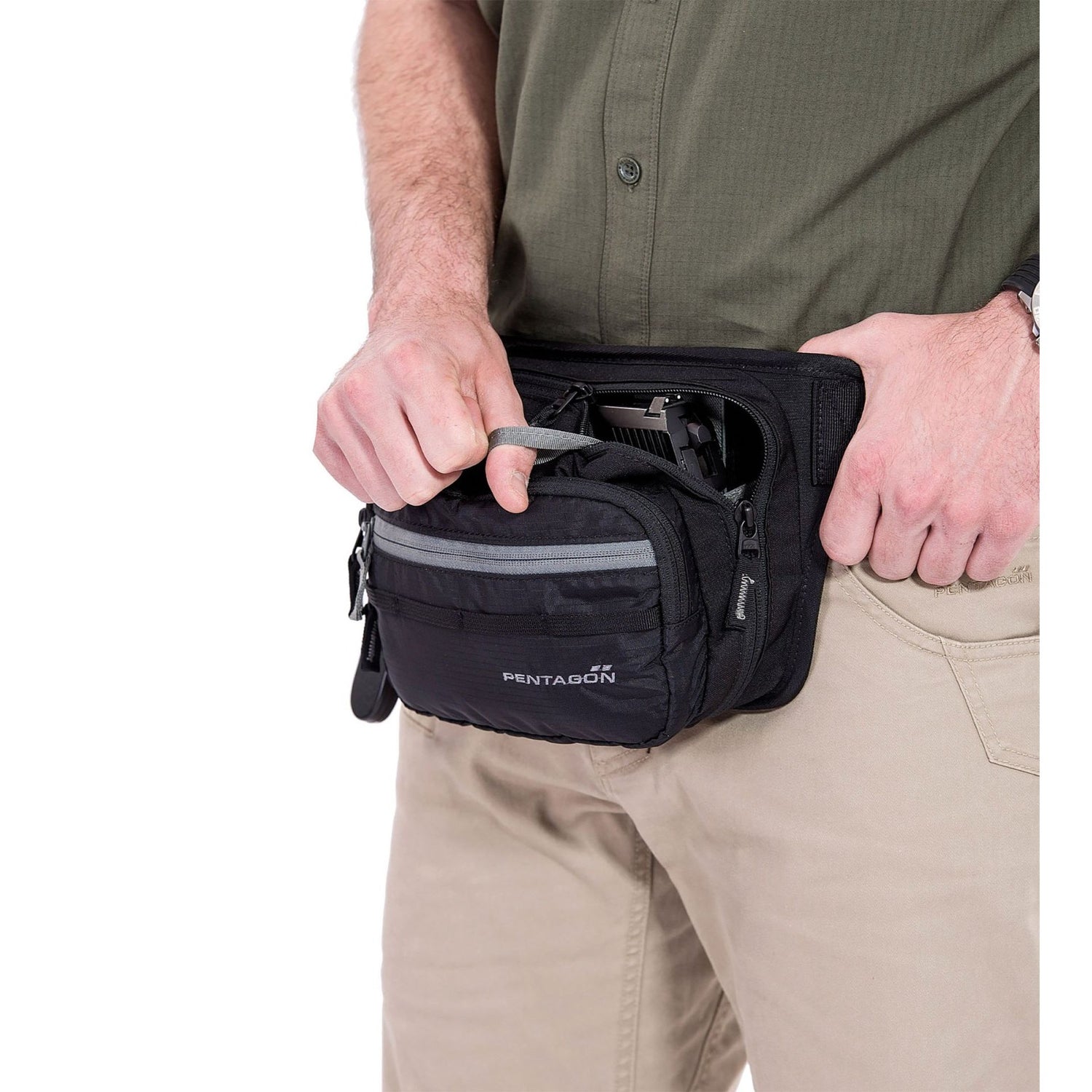 Pentagon Runner Concealment Pouch 2.0 ist eine kompakte und funktionale Bauchtasche, die speziell für den dienstlichen und zivilen Einsatz entwickelt wurde. Sie ist ideal für Anwender, die Ausrüstung unauffällig, körpernah und sicher mitführen müssen. Besonders geeignet ist sie für behördliche Anwender und Sicherheitsdienste sowie für den verdeckten Einsatz.