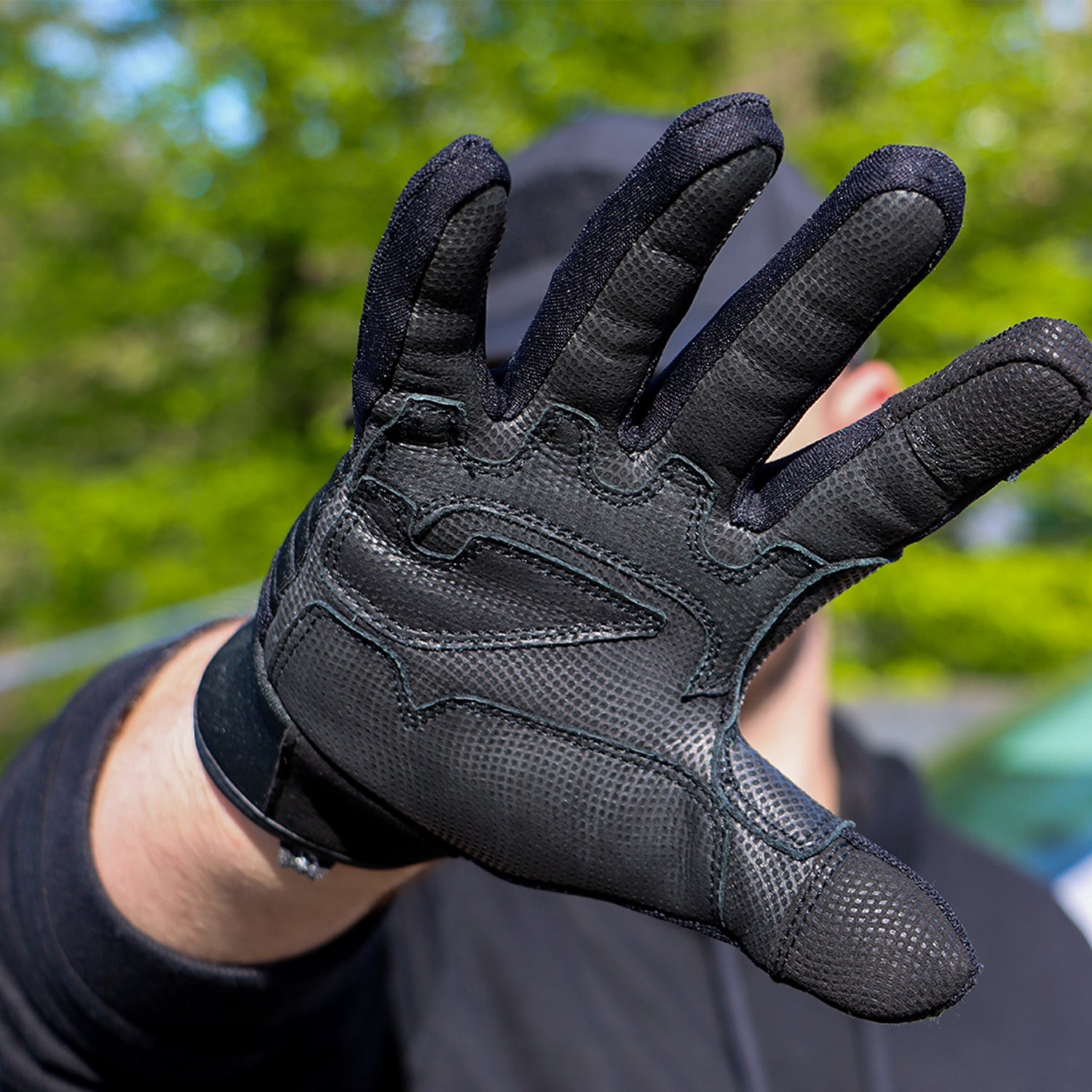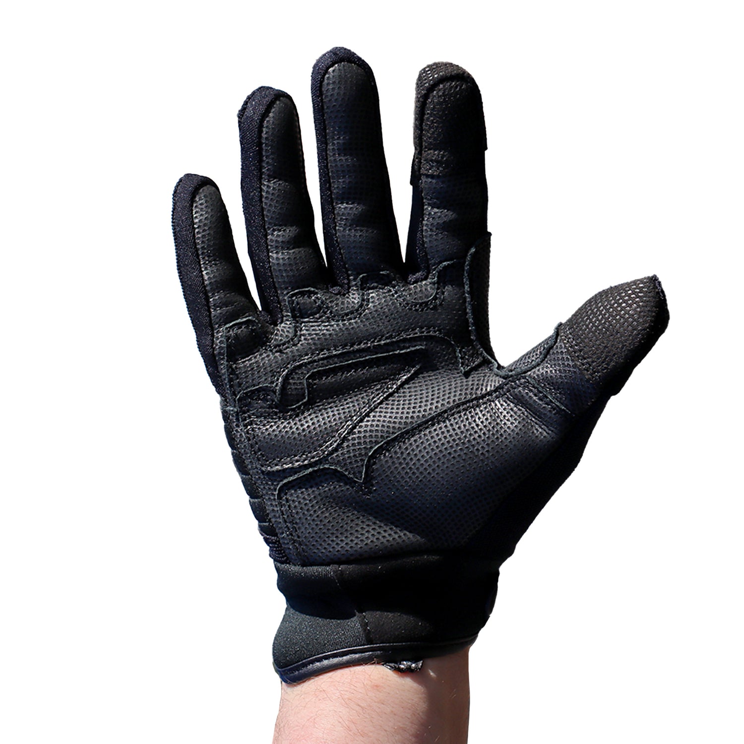Handinnenfläche: Komplette Lederhandinnenfläche mit rutschfestem Grip-Material für sicheren Zugriff und optimale Waffenkontrolle