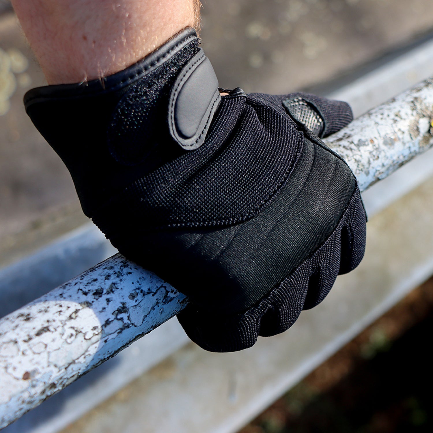 Das Obermaterial der Handinnenfläche ist ein rutschfestes Grip-Material, das einen sicheren Zugriff und eine optimale Waffenkontrolle gewährleistet. Der Bereich des Handrückens erhält durch elastische Einlagen aus Spandex-Nylon eine hervorragende Passform mit perfektem Sitz. An der Daumenaußenseite befindet sich ein saugfähiges Material, um damit Feuchtigkeit z.B. von Zieloptiken, Brillen oder anderen Glasträgern abwischen zu können.