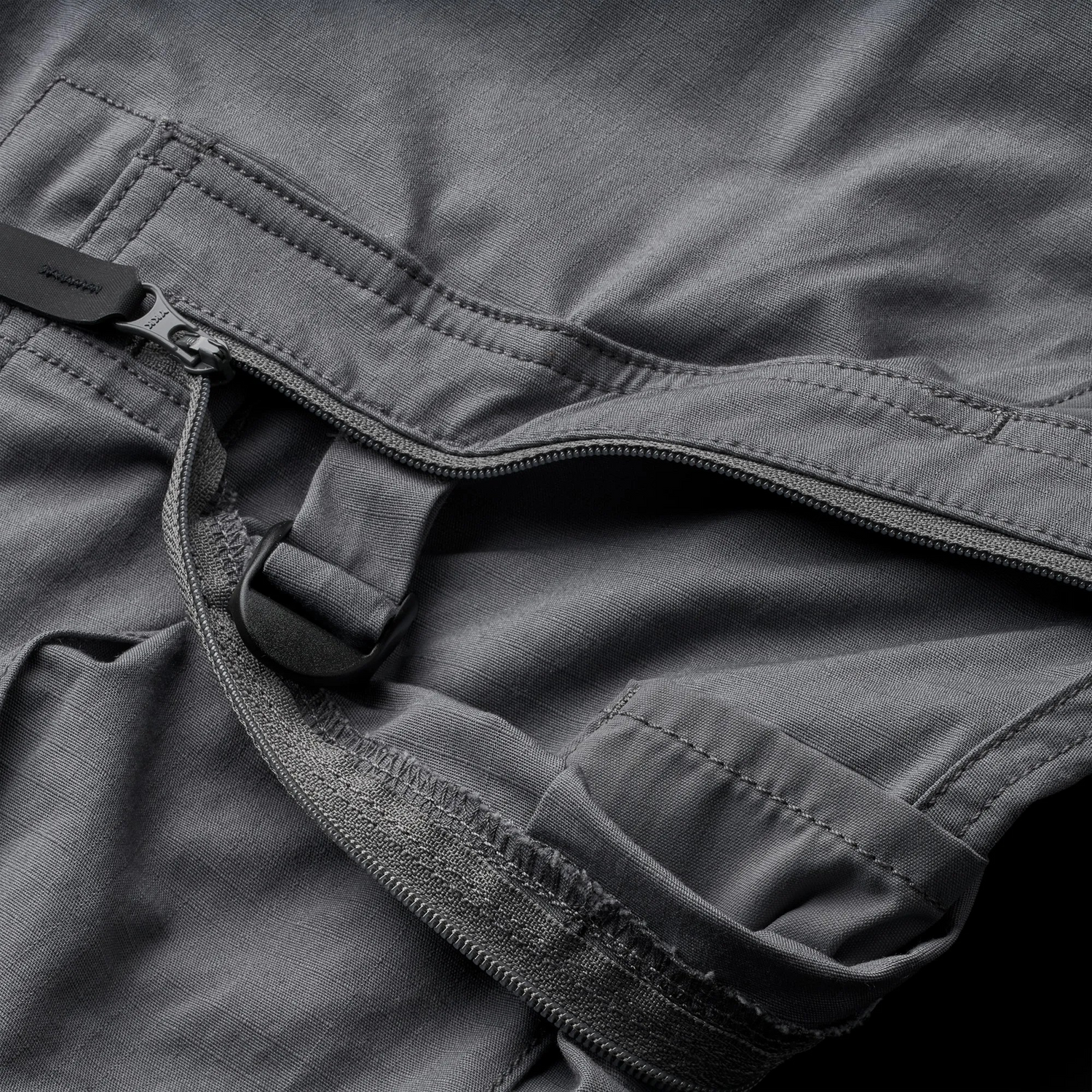 Beinöffnung: An der Beinöffnung befestigter Schnürsenkelhaken, verstellbarer Saum mit innenliegendem Reißleinensystem