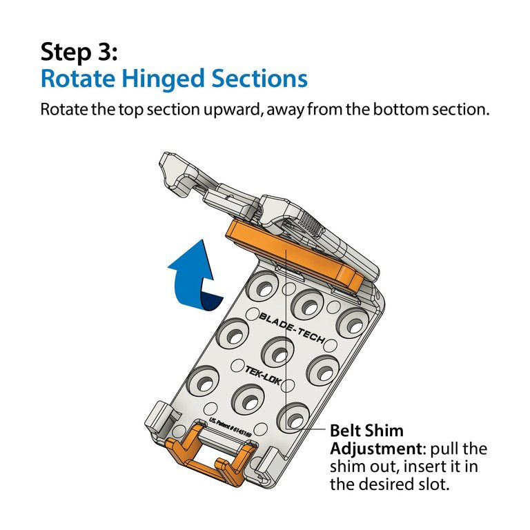 BLADE-TECH - Tek-Lok Large bietet ein innovatives und patentiertes Adaptersystem der Firma Blade-Tech aus den USA. Es ist ideal für diverse Waffenholstersysteme und Messerscheiden wie Kydex oder SecurEx und passt sich verschiedenen Gürtel- oder Gurtbreiten an. Dank unterschiedlicher Schraubenpositionen können Sie Holster und Messerscheiden sehr flexibel am Gürtel (bis max. 60 mm Gürtelbreite), Gurt oder der Ausrüstung befestigen. Ein schneller Zugriff in verschiedenen Positionen ist garantiert.
