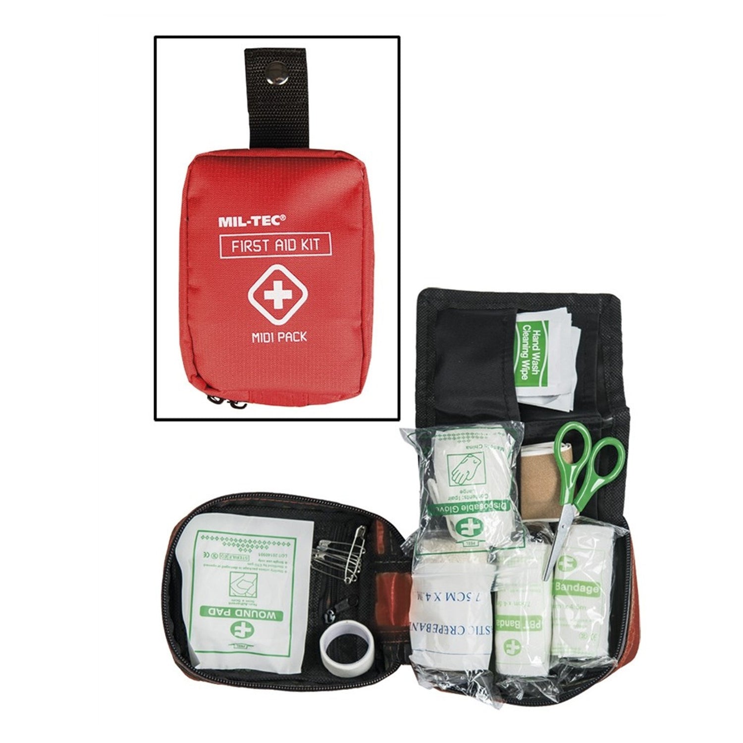 MILTEC First Aid Pack Midi Rot Das Produkt ist nachbestellt und wird versandt, sobald es wieder verfügbar ist.