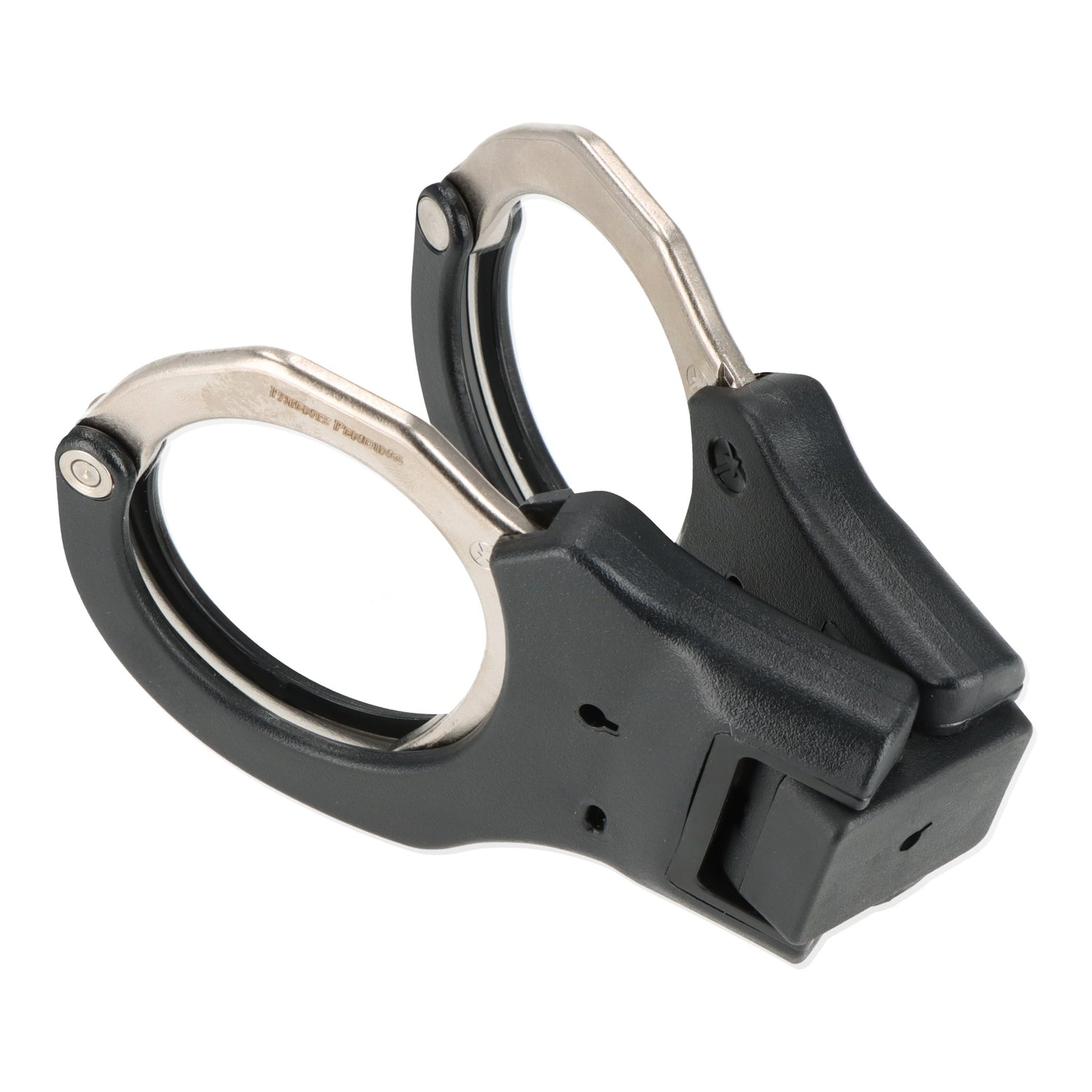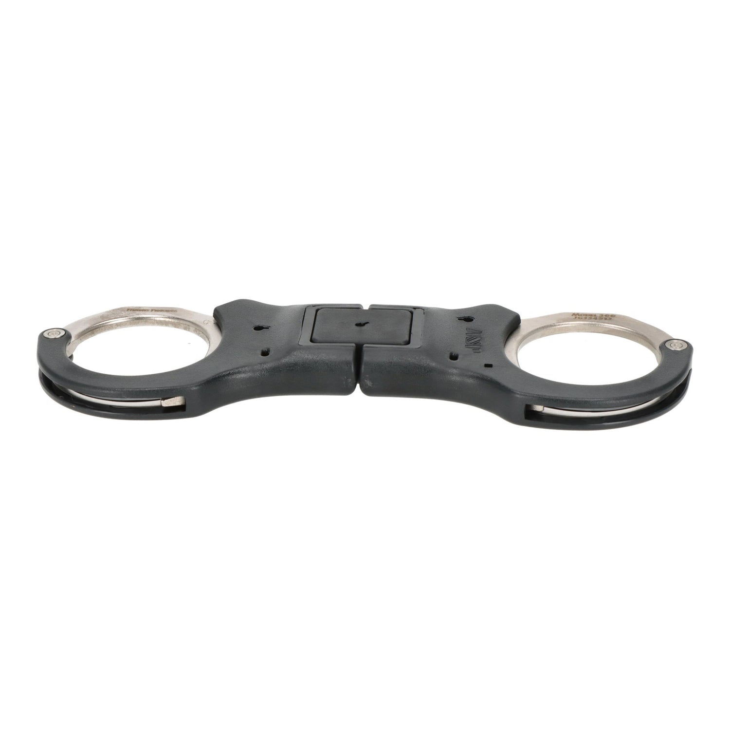 Die Rahmen der Handschellen bestehen aus hochfestem Edelstahl und sind mit einem Polymer in Ordnance-Qualität umspritzt. Dies sorgt für maximale Stabilität bei geringem Gewicht. Das starre Mittelstück ermöglicht eine besonders effektive Fixierung, ideal bei unkooperativen oder aggressiven Personen. Techniken zur Schmerzkontrolle lassen sich einhändig umsetzen, während die reduzierte Beweglichkeit zusätzliche Sicherheit bietet.