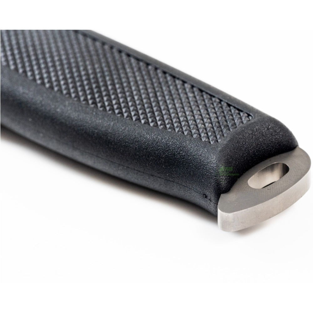 Das Messer verfügt über eine Öse für einen Fangriemen, was zusätzliche Sicherheit und Komfort bietet. Das Gesamtgewicht des Messers beträgt ca. 290 g, was es leicht und einfach zu handhaben macht.