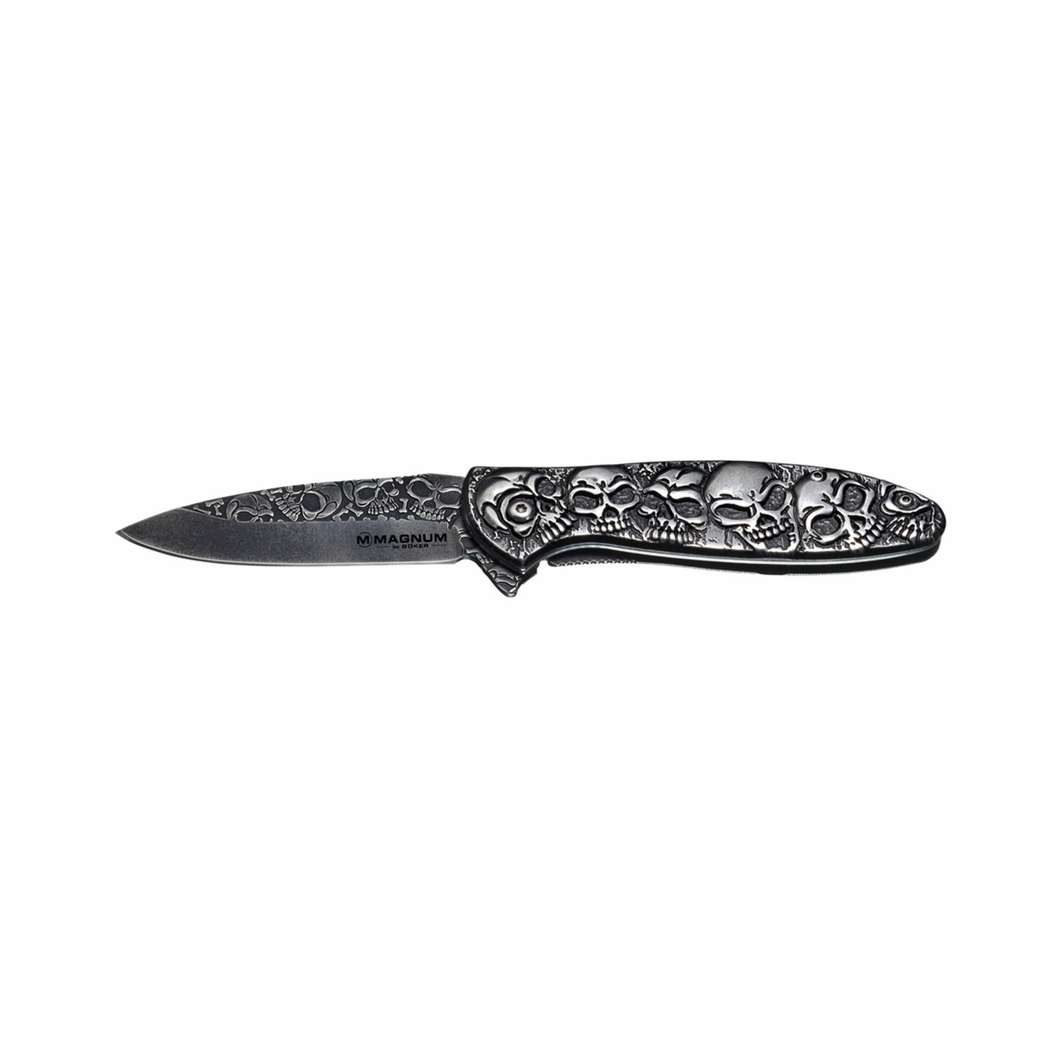 Magnum Dia de los Muertos ist ein originelles Taschenmesser, das mit einer großen Anzahl von Schädeln besticht. Es ist benannt nach dem Tag der Toten, einer der wichtigsten mexikanischen Feiertage, an dem Familien und Freunde zusammenkommen, um für verstorbene Angehörige und Freunde zu beten und ihrer zu gedenken. Der geformte Griff verleiht den Schädeln eine unglaublich strukturierte Erscheinung. Die Klingen aus 440A-Stahl sind ebenso mit einer Vielzahl von Schädeln und Knochen verziert und lassen sich leicht mit dem federunterstützten Flipper öffnen. Sie beinhalten einen Linerlock und Clip.
