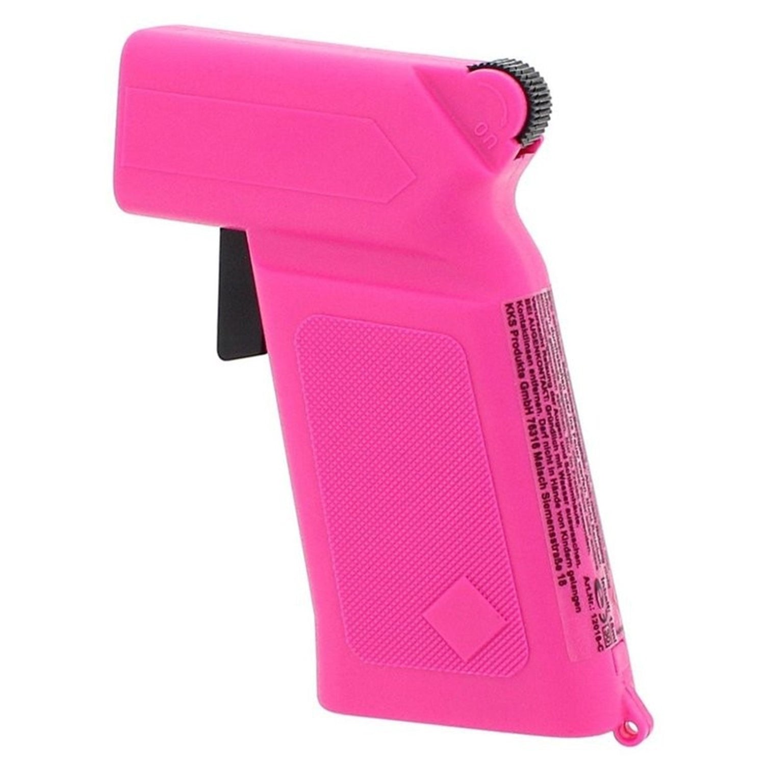 Die eingebaute Sicherung garantiert, dass das Gerät nicht versehentlich ausgelöst wird und sorgt so für zusätzliche Sicherheit. Die effektive Reichweite des Sprays beträgt ca. 3 m, was ausreichenden Abstand zum Angreifer ermöglicht.
