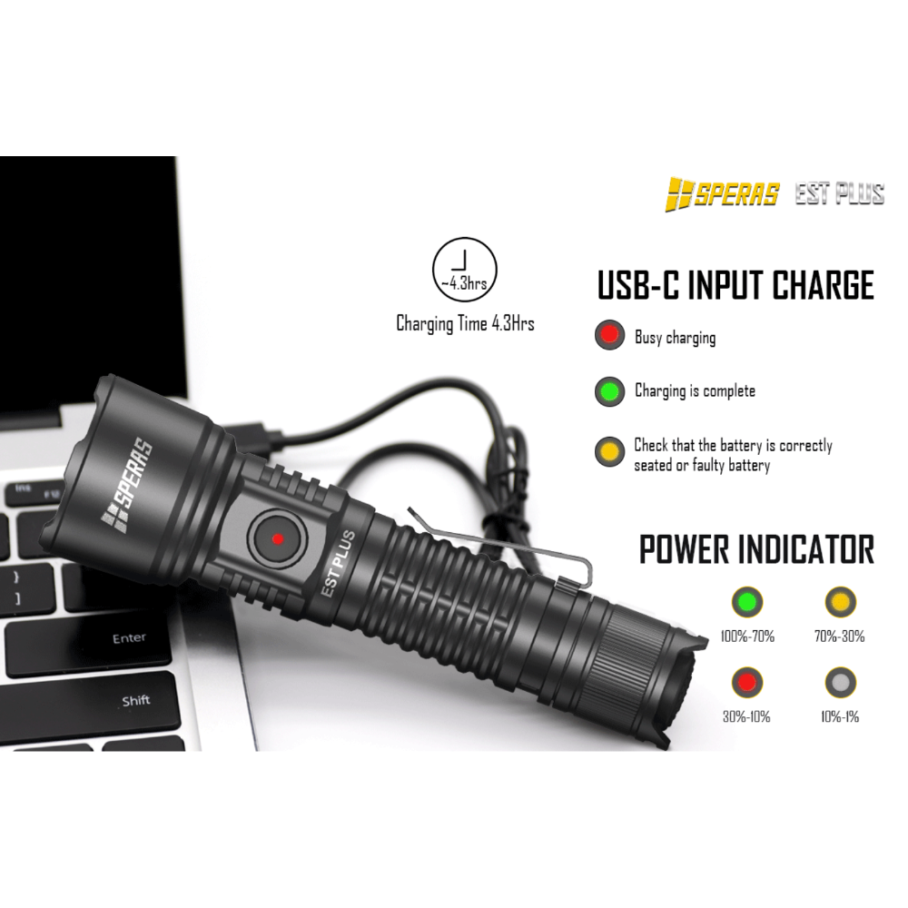 Die Speras EST PLUS Taschenlampe ist aus hochwertigen Materialien gefertigt, die eine lange Lebensdauer gewährleisten. Sie ist robust und widerstandsfähig gegen Stöße und mechanische Beschädigungen, was sie zu einem idealen Begleiter für den harten Alltag macht.