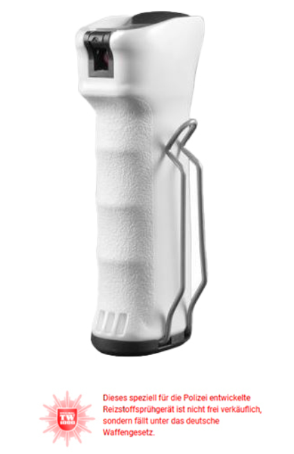 Standardmäßig enthält das Gerät natürlichen Chili-Extrakt OC (Oleoresin Capsicum), der aus scharfen Chilipaprikas gewonnen wird. Alternativ kann PAVA (Pelargonsäure-vanillylamid) verwendet werden, ein synthetischer Scharfstoff, der natürliches Capsaicin nachahmt und ursprünglich für pharmazeutische Anwendungen entwickelt wurde.Hinweise und Sicherheitsinformationen