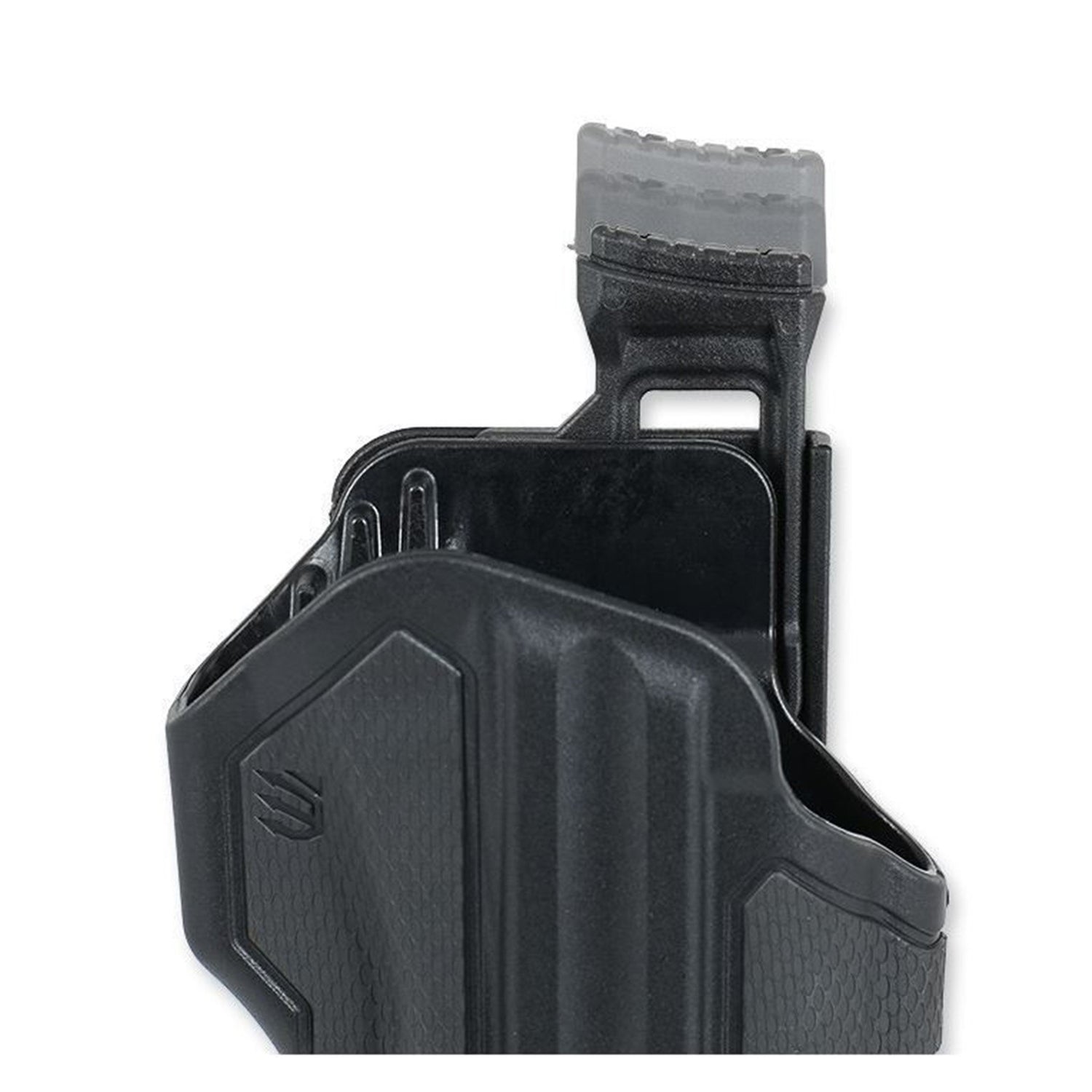Das Free-Floating-Design schützt den Pistolenrand und die Oberfläche, während der Level 2 Retention Mechanismus Ihre Waffe sicher festhält. Die SERPA Auto Lock Entriegelung sorgt für zusätzliche Sicherheit.Flexibilität und Komfort