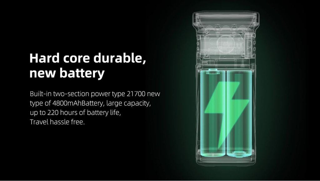 Ausgestattet mit zwei Typ-21700 Akkus mit 4800 mAh bietet sie eine beeindruckende Leistung und wird in weniger als 2 Stunden über ein USB-C-Kabel vollständig aufgeladen.Vielseitige Einsatzmöglichkeiten
