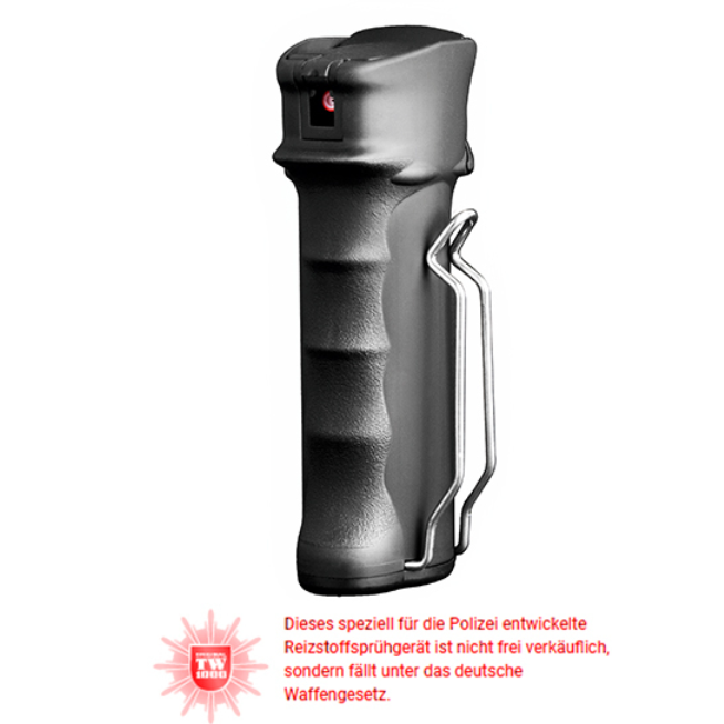 The TW1000 RSG-6 offers outstanding performance and safety for professional use. This irritant spray device is ideal for a variety of application scenarios and features a handy and durable design. It features an exclusive anti-slip coating and a sturdy belt clip suitable for both left- and right-handed users. The hinged lid with spring mechanism prevents accidental activation, while the ballistic liquid jet enables precise and targeted application. With up to 22 sprays and replaceable spray cartridges, the RSG-6 offers maximum efficiency and safety in use.