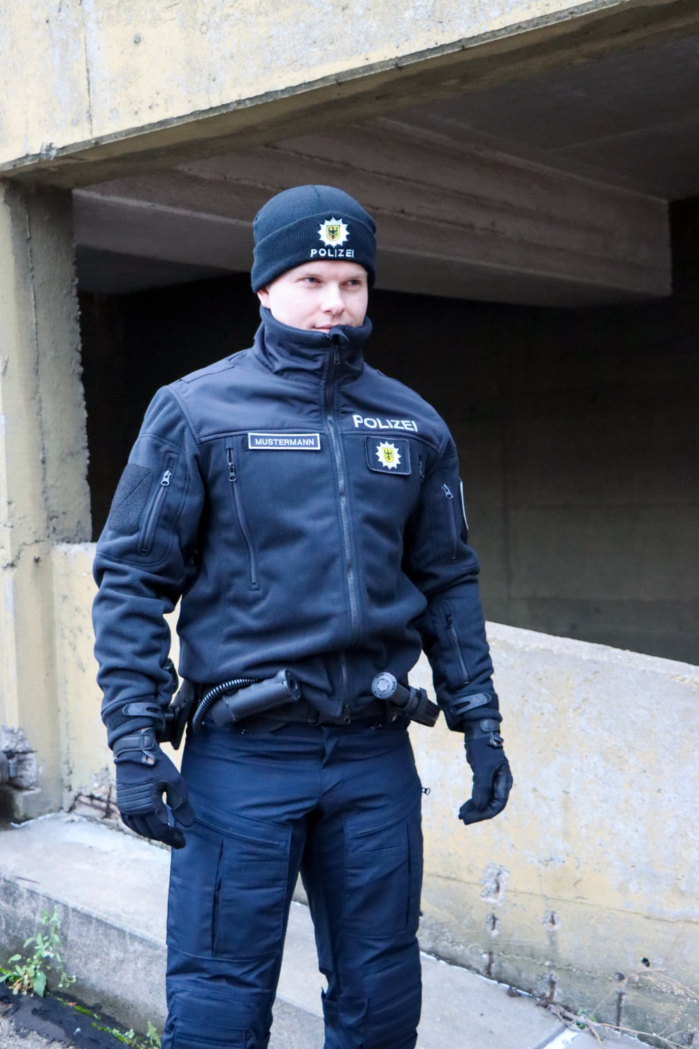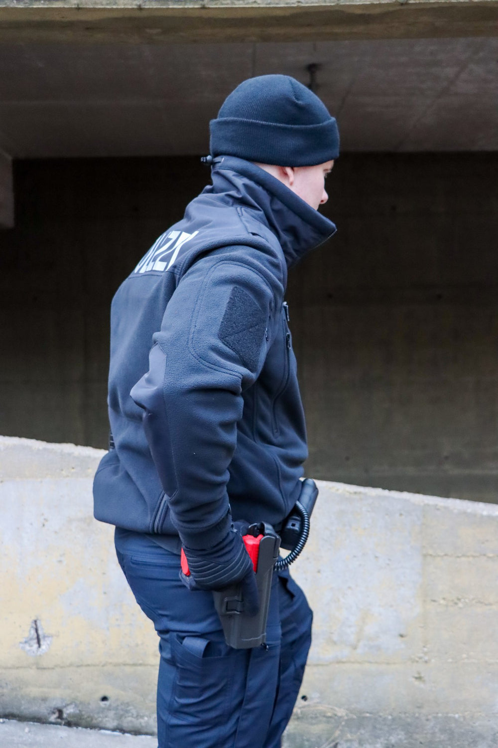 Die seitlichen Gummibänder auf Höhe der Dienstwaffe sorgen für eine optimale Anpassung der Jacke. Die Oberarm- und Brust-Flauschplatten bieten zusätzliche Funktionalität für Abzeichen und andere Ausrüstungsgegenstände.Ideal für Sicherheitskräfte
