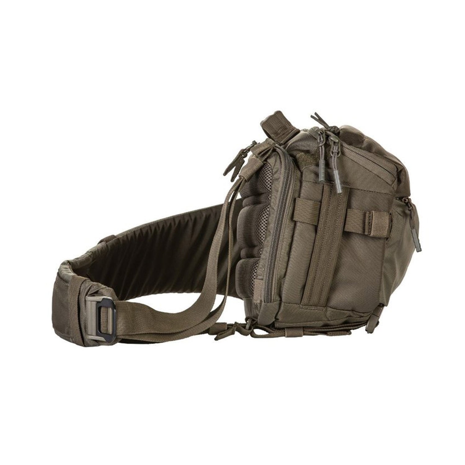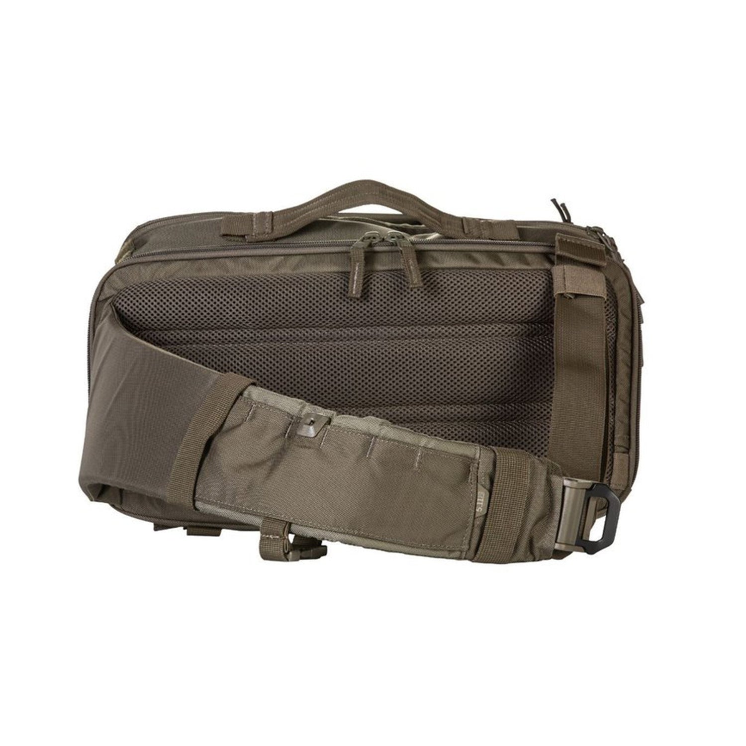 5.11 LV10 Sling Pack is the ultimate solution for concealed use and offers a special pocket for safe and quick removal of the weapon. This backpack was developed for security forces who rely on efficiency and discretion. Made from water-resistant 840D nylon , it guarantees robustness and durability even under demanding conditions. The backpack has a padded tablet sleeve, an admin panel and several zippered pockets that allow optimal organization of your equipment. The laser-cut MOLLE system enables flexible attachment options. With a volume of 13 liters and a weight of approx. 1,000 g, the LV10 Sling Pack is light, yet spacious enough to hold all the necessary equipment.