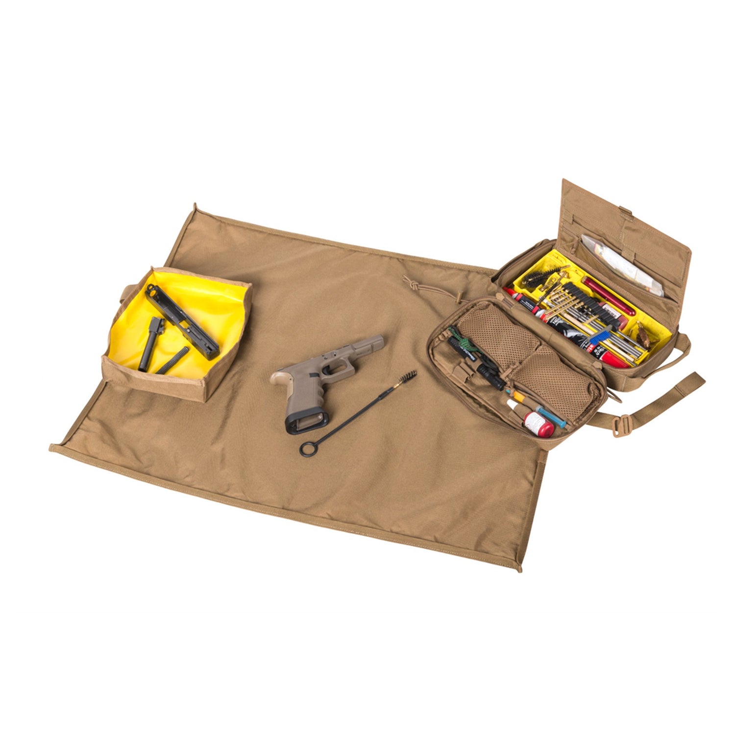 The bag features a removable cleaning pad as well as a foldable tray, also lined with yellow rubber to keep small parts visible and repel liquids. With YKK® zippers and co-design with TrainingSquad.pl, this bag offers the highest functionality and durability. External zippered pockets and additional attachment options complete the profile.
