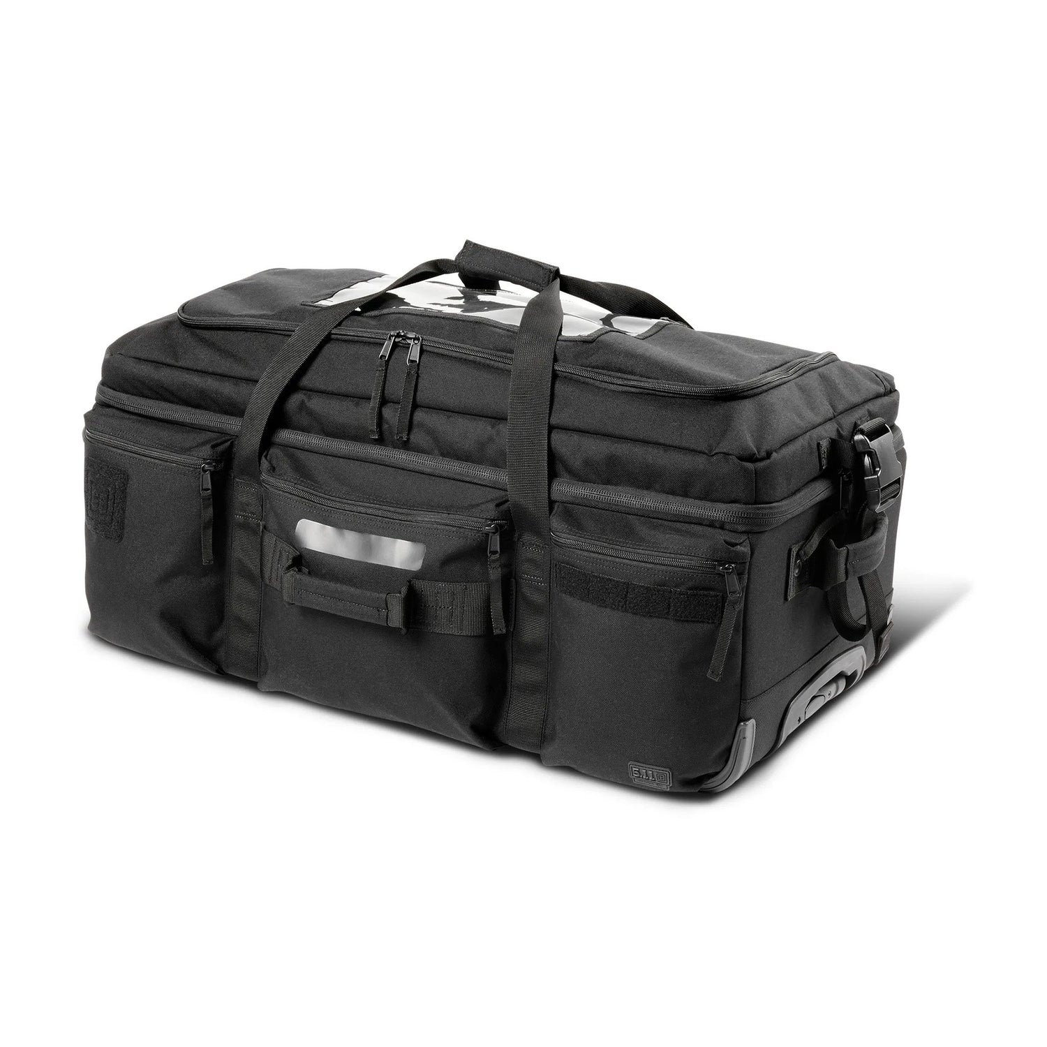 The bag features a clear vinyl document pocket and a business/ID card holder for quick identification. Three Velcro panels for ID patches and name strips and four exterior zippered pockets provide additional storage space.Interior