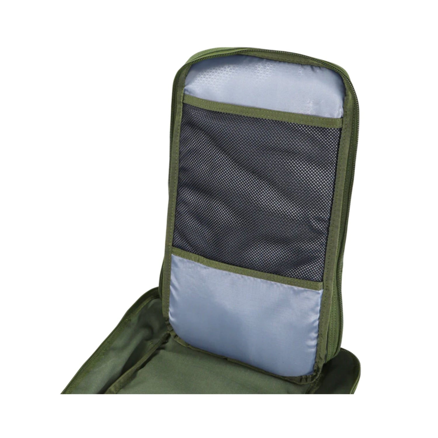 Compartments: 4 (main compartment with 1 inside pocket and 1 mesh pocket, middle compartment with 2 mesh pockets, front administration compartment)