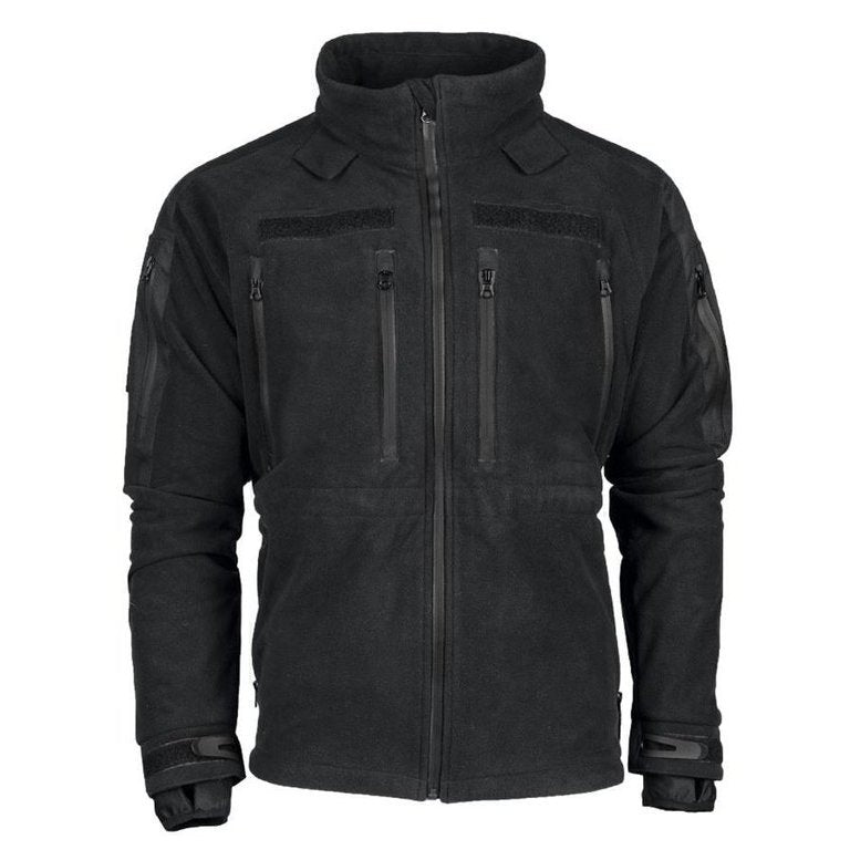 The FLEECE COLD PROTECTION JACKET PLUS from MIL-TEC offers extra protection and comfort thanks to the bonded process. Two layers of fleece are connected by a TPU membrane, which makes the jacket breathable, waterproof and windproof . The YKK® main zipper is equipped with a wind and chin guard, which protects against unpleasant draughts. The cable outlet for headset or headphone cables is particularly practical for security guards. The jacket has a total of 10 pockets , including two zipped pockets, four zipped pockets in the chest area, two upper arm pockets and two inside pockets. It also offers plenty of space for name patches thanks to the two Velcro areas.