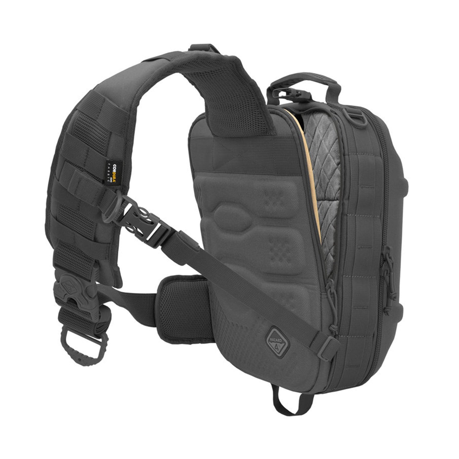 The Hazard 4 Hibachi Light Shell Sling Pack is an innovative sling backpack that is ideal for security guards and outdoor enthusiasts. The lightweight molded shell and 360° padding provide excellent protection for optics, electronics and even weapons. The special sling configuration allows the backpack to be quickly pulled from the back to the chest, allowing for quick access.
