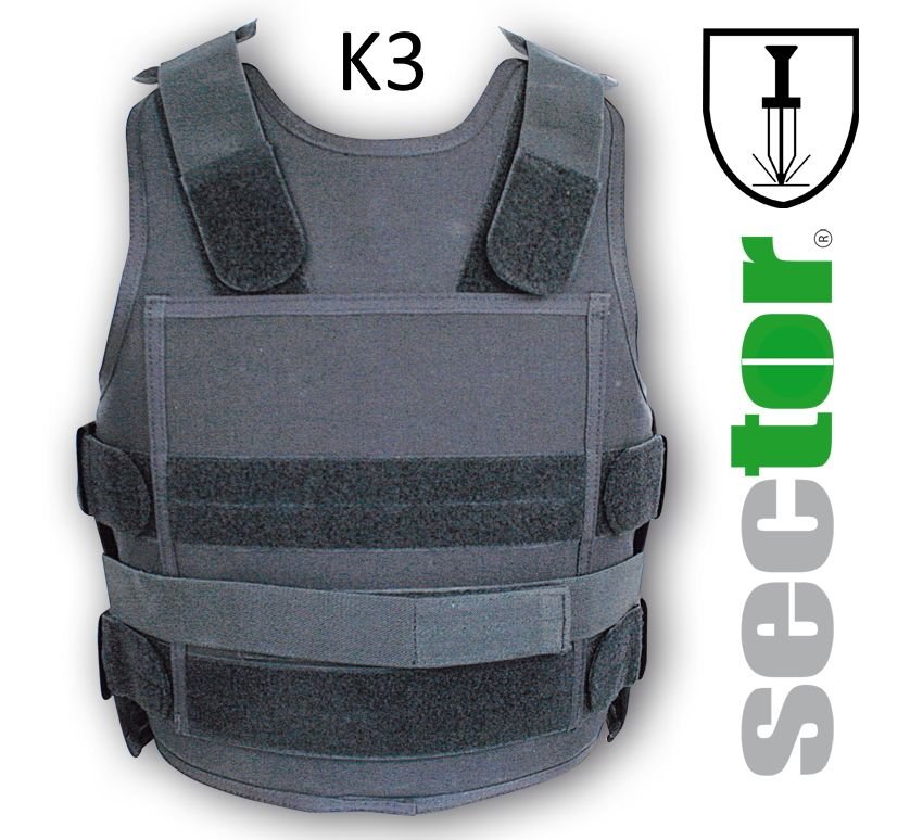 Excellent stab-proof vest with security level K3 . Ideal for police, law enforcement, and security services. This vest can be comfortably worn under a sweatshirt or sweater, for example. The 2.2 mm thick stab-resistant plastic plates are located on the back and chest area. The back and chest area are additionally protected with a 2.5 mm special stab-resistant K3-certified aluminum plate . To facilitate cleaning, the protective plates can be removed using the Velcro fasteners and reinserted after washing. Material: 100% polyester, high-quality workmanship. // 2315-2316-2317-2318-2319 //