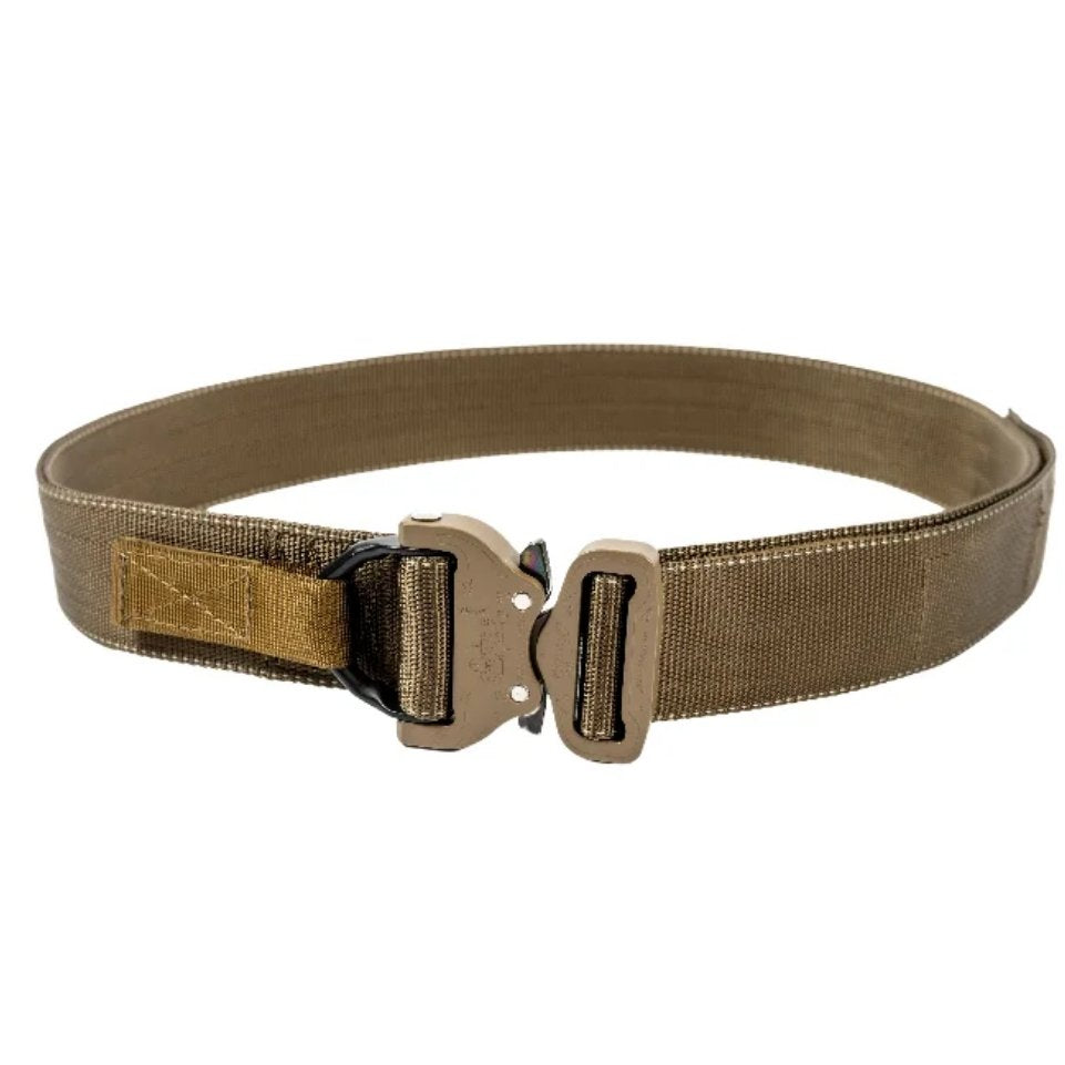 The Jed Belt is made from Class 7a seat belt webbing, which is designed to the MIL-W-4088 standard for a breaking load of 2700kg. The double-layered webbing is resin-coated to achieve an optimal balance between strength and comfort. The excess length of the webbing is fixed with Velcro and is cut diagonally for easier handling. Continuous Velcro on the inside complements the functionality of the belt and allows additional equipment to be attached.