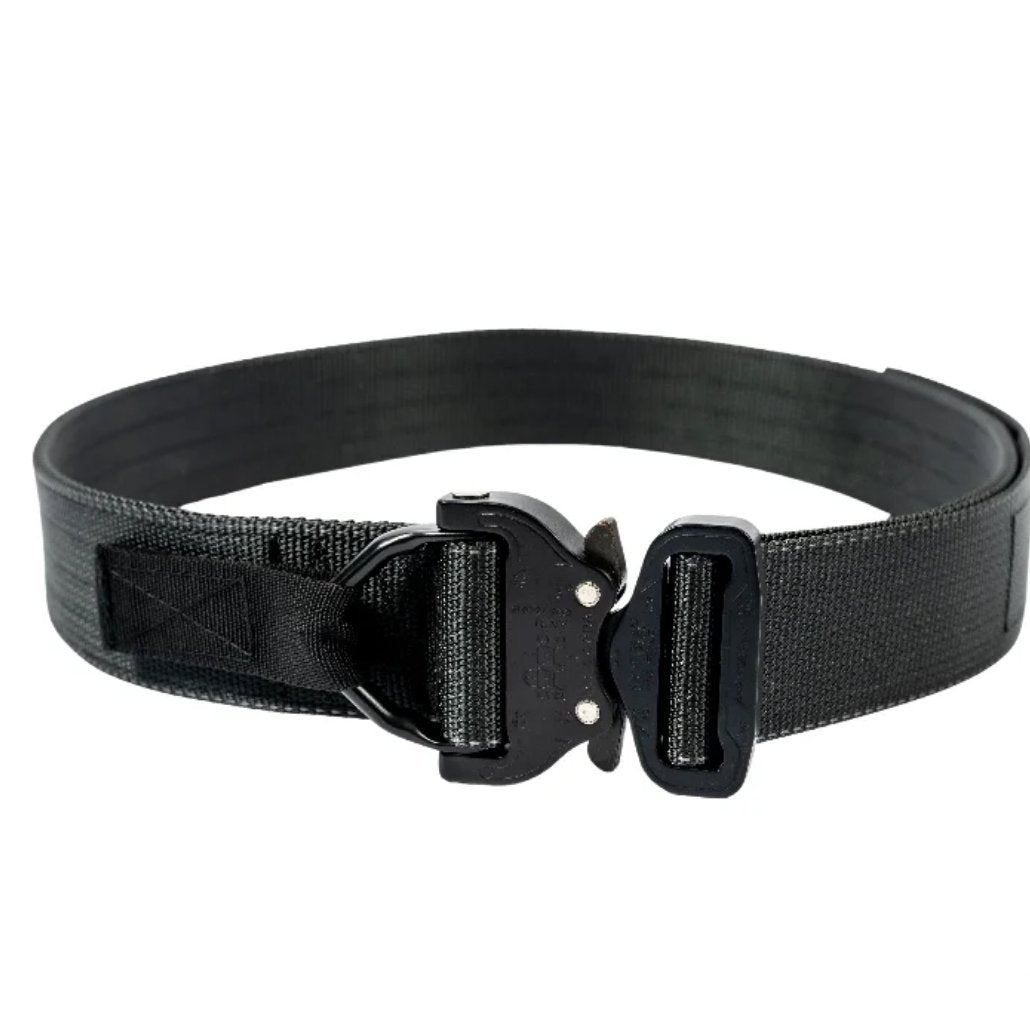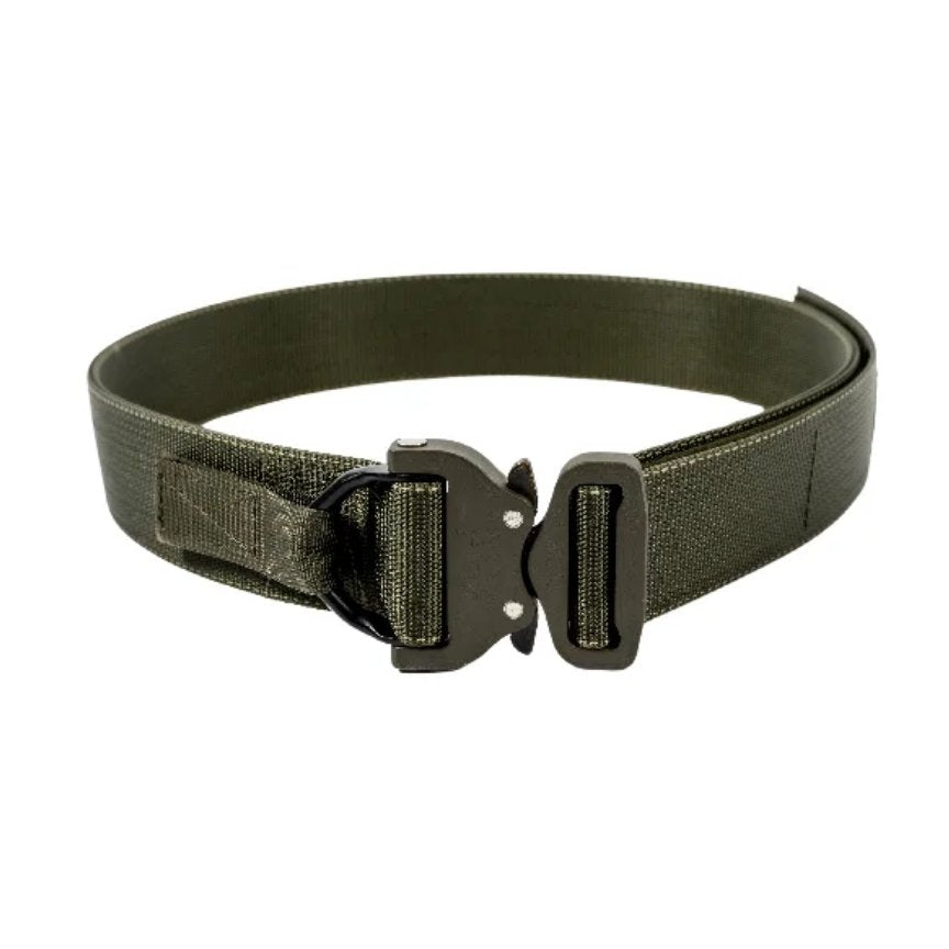 MD-Textil Jed Belt including reinforcement is an extremely robust belt that is characterized by its impressive stability and versatility. 100% handmade in Germany, this belt is specially designed for high loads and is ideal for professional use by security forces. The belt has a D-ring that is integrated into the clasp, offering additional security and functionality. The original Cobra-Buckle safety clasp made of 7075 CNC-milled material guarantees a high breaking load of 18 kN and can only be opened when the load is relieved. This ensures that the belt remains reliably closed even under extreme conditions.