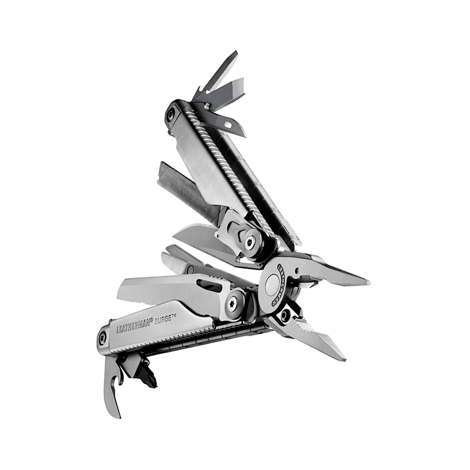The LEATHERMAN SURGE is a versatile multi-tool specifically designed for heavy-duty work. This multi-tool features the largest pliers and the longest blades Leatherman has to offer. With user-friendly locking mechanisms, a unique blade changer, and four externally accessible blades, the Surge allows for quick access to the tools you need. Its robust construction and wide range of tools make it a perfect choice for demanding tasks.