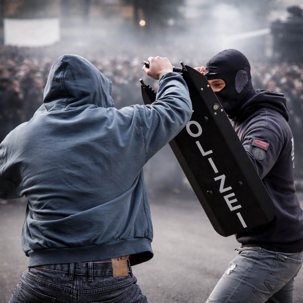 Die hohe Beweglichkeit gewährleistet Handlungssicherheit bei Zugriffen und Festnahmen, Schub- und Abdrängbewegungen sowie beim körpernahen Positionieren vor Kollegen oder Dritten. Die Formgebung unterstützt eine aktive Nutzung als Barriere zwischen Täter und Beamten sowie das kontrollierte Abdrängen und Begrenzen der Bewegungsfreiheit des Angreifers.