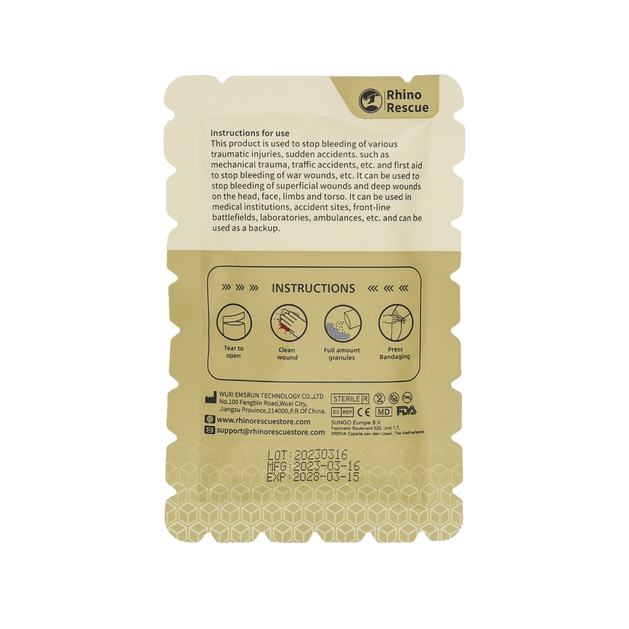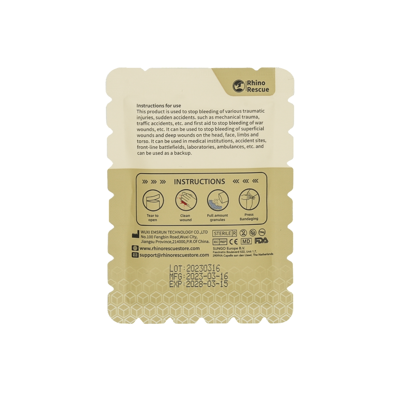 Rhino Chitosan Hemostatic Gauze 7.5cm x 150cm is an innovative product in the field of medical care and first aid. As a revolutionary first aid solution, it allows for the rapid and effective stopping of bleeding. The Chitosan Hemostatic Gauze is coated with chitosan, a natural, biocompatible biopolymer that causes strong hemophilia (blood stasis) and significantly accelerates blood clotting.