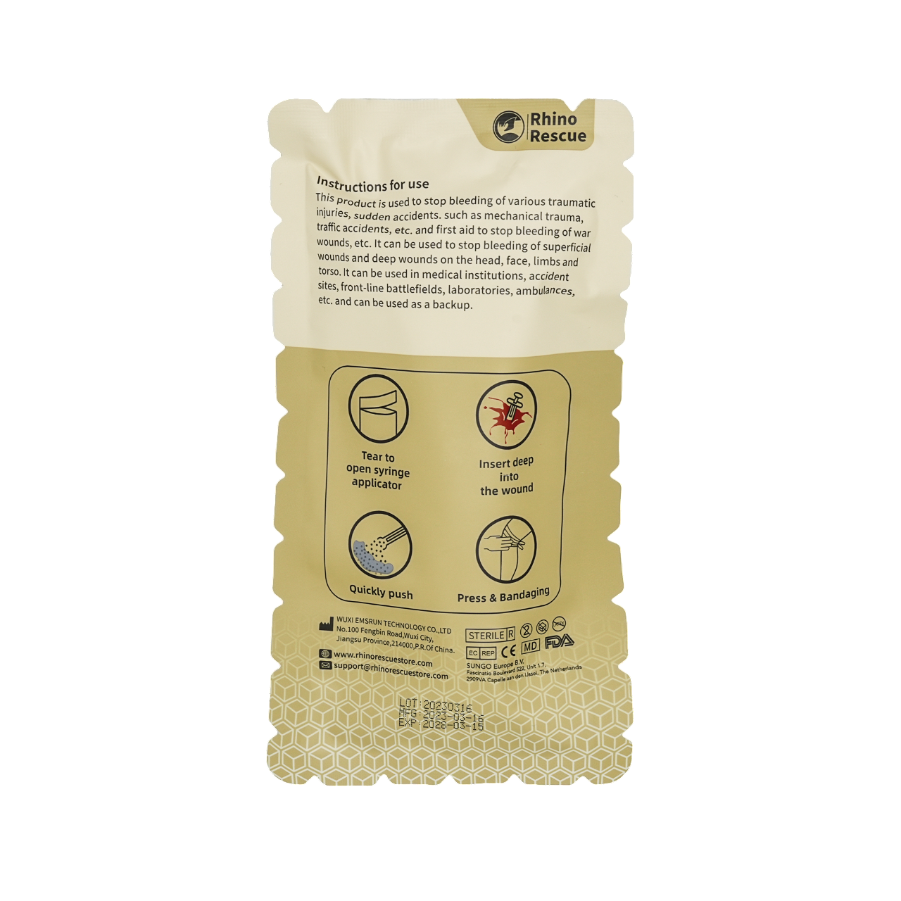 Rhino Rescue Rapid Hemostatic Granules are designed to effectively stop bleeding in the shortest possible time. These granules offer a practical solution for severe injuries where a rapid response can be life-saving.