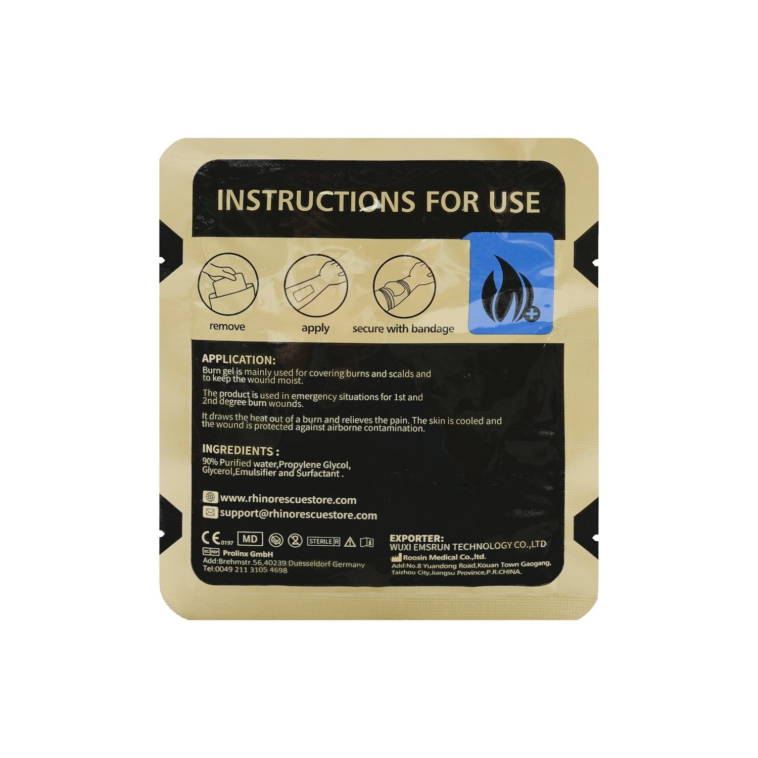 Rhino Rescue Emergency Burn Dressing is an effective and essential first aid aid for burns. It is a high-quality emergency burn dressing specially formulated to relieve the pain and discomfort of burns and promote the healing process. It contains a special cooling and soothing gel that cools and soothes wounds. Its compact size of 100 x 100 mm and its light weight of 40 g make it easily portable and ideal for rapid deployment.