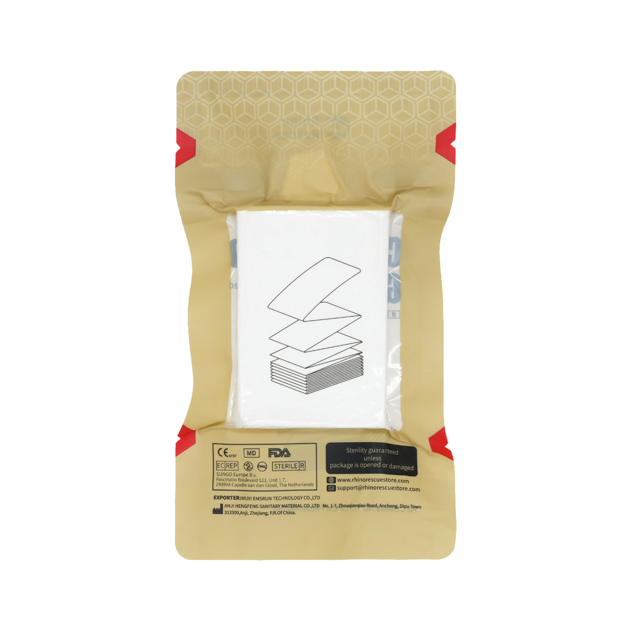 Rhino Rescue Quick Response Compressed Gauze is an essential tool for first responders and security personnel. It is specifically designed to quickly and efficiently treat wounds in an emergency. Made from highly absorbent cotton material, it is extremely soft and comfortable against the skin , while also capable of absorbing a large amount of fluid.