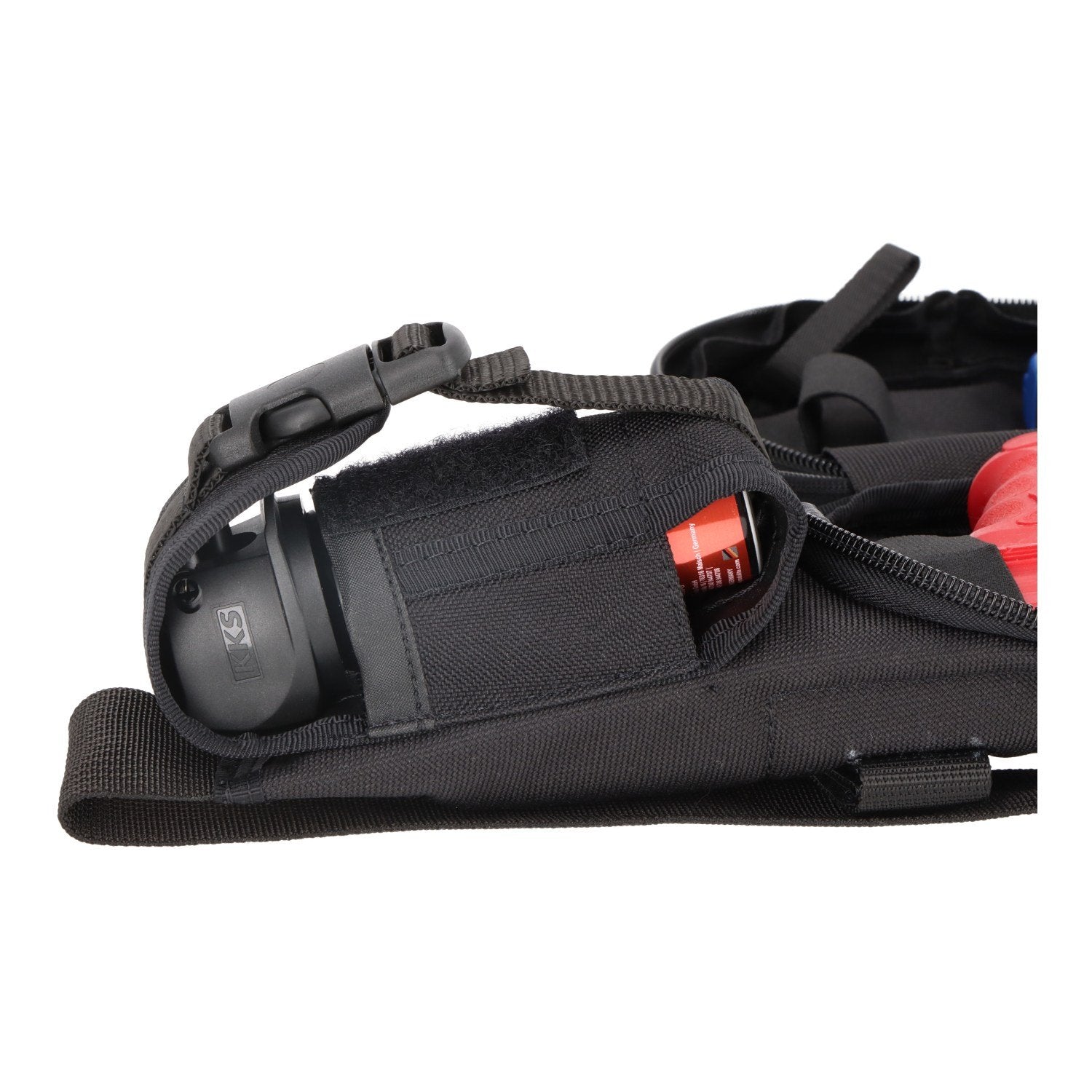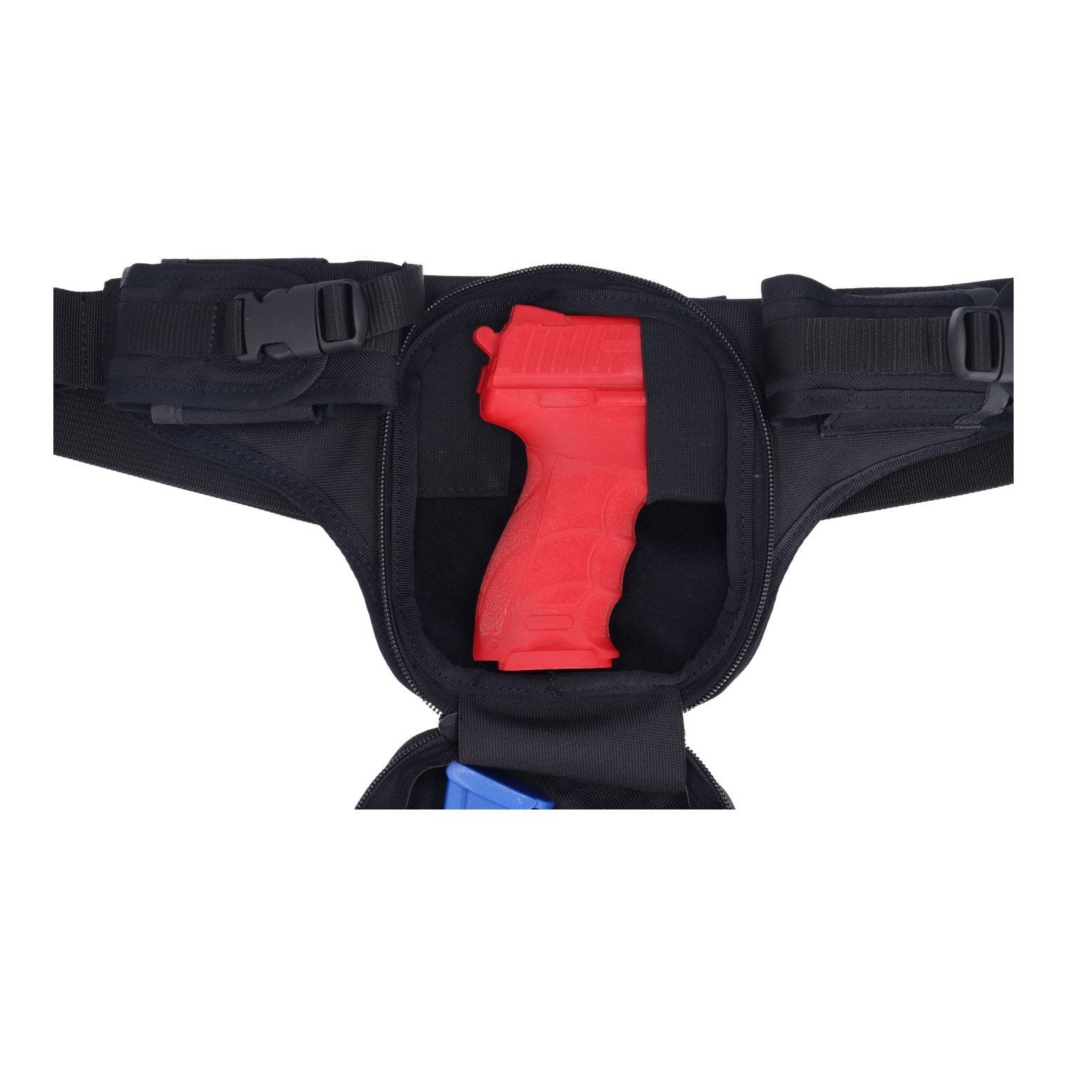 The Dasta 'Civil' fanny pack is the perfect companion for civilian service, offering discreet storage solutions. The main holster compartment is easily accessible and allows for concealed carry of pistols. Two panic loops on the left and right offer flexible carrying options, regardless of whether you're right- or left-handed. The additional front compartment offers ample space to safely store change, a wallet, or headphones. The adjustable waist belt ensures a perfect fit for every wearer. The simple design completes the fanny pack and makes it the ideal accessory for professional use in civilian service.
