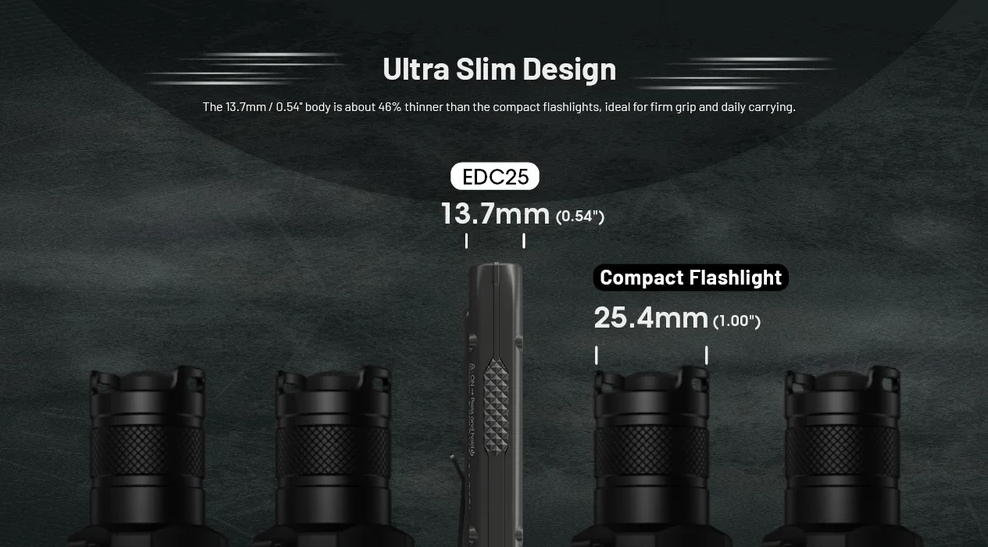 The Nitecore EDC25 3000 lumen USB-C rechargeable EDC flashlight boasts impressive brightness and range, making it the ideal choice for everyday use. Equipped with the innovative NiteLab UHi 20 LED, the EDC25 delivers a powerful 3000 lumen output and an impressive 300-meter range.