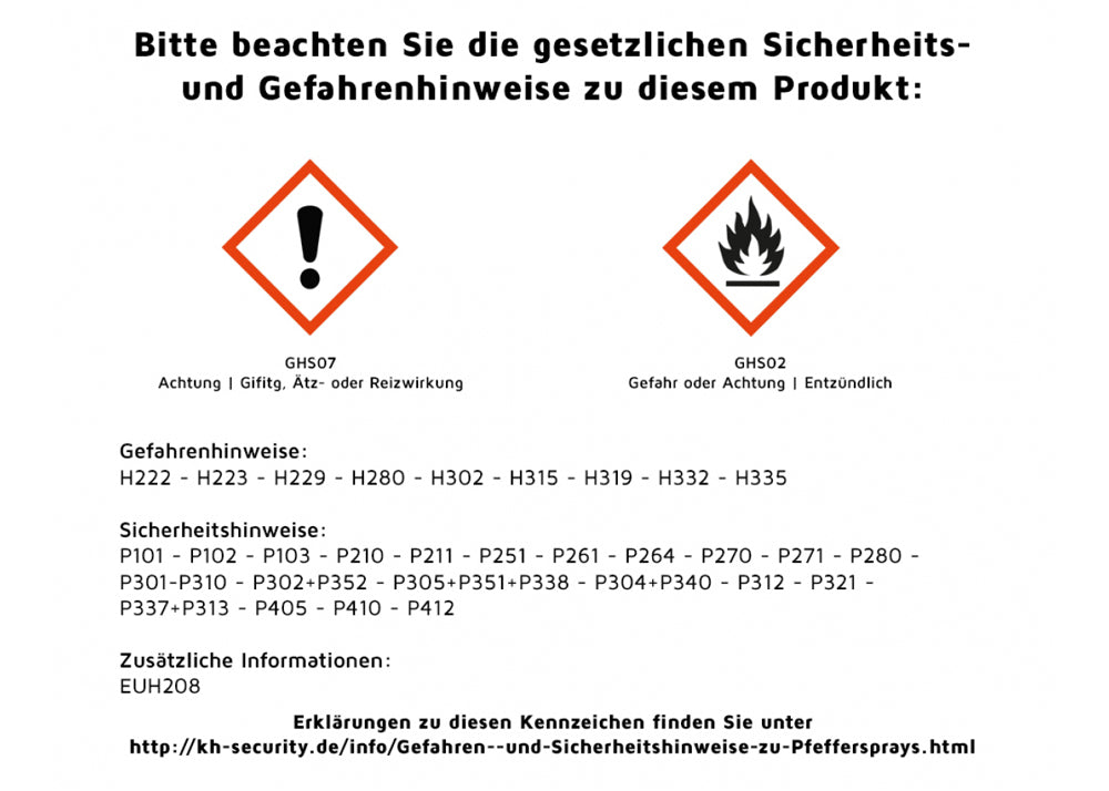 With a size of approximately 15 cm and a weight of approximately 140 g, this pepper gel is handy and easy to carry. This makes it ideal for everyday use in various scenarios.Danger and safety instructions