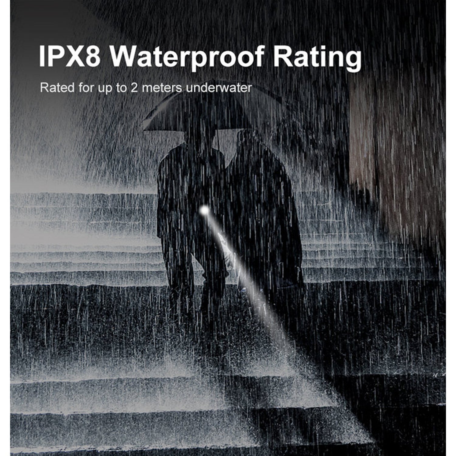 Für die robuste Handhabung sorgt das mit HAIII hartanodisierte Aluminiumgehäuse. Es ist nach dem internationalen Standard IPX-8 wassergeschützt und somit gegen temporäres Untertauchen geschützt. Des Weiteren weist die LED-Taschenlampe eine Sturzresistenz bis zu einer Höhe von einem Meter auf.