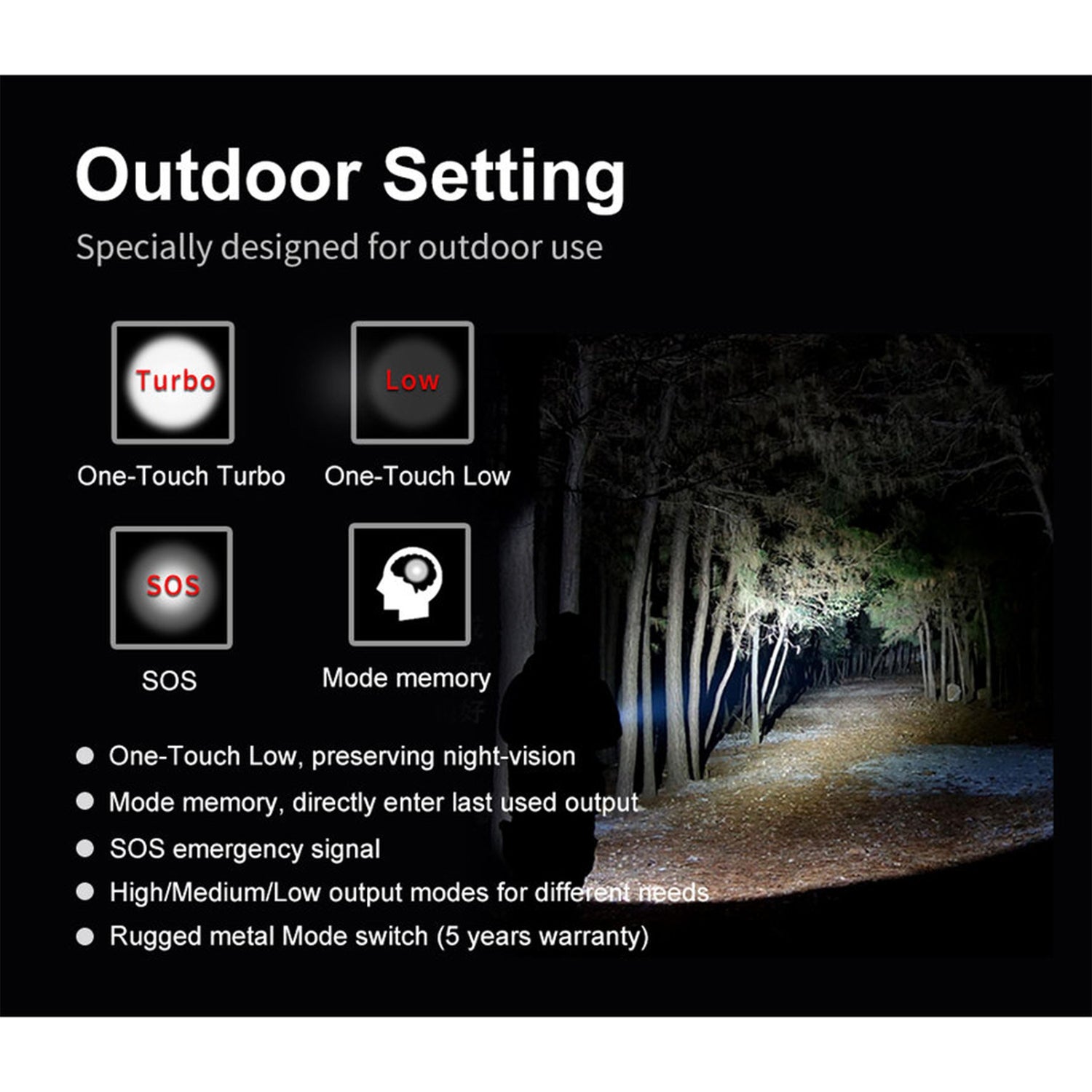 Der genutzte LED-Typ CREE XHP70.2 P2 bietet eine lange Lebensdauer und hervorragende Lichtleistung. Zusätzlich kommt ein integrierter 21700 Li-Ion Akku zum Einsatz, welcher eine hohe Leistungsfähigkeit sicherstellt.