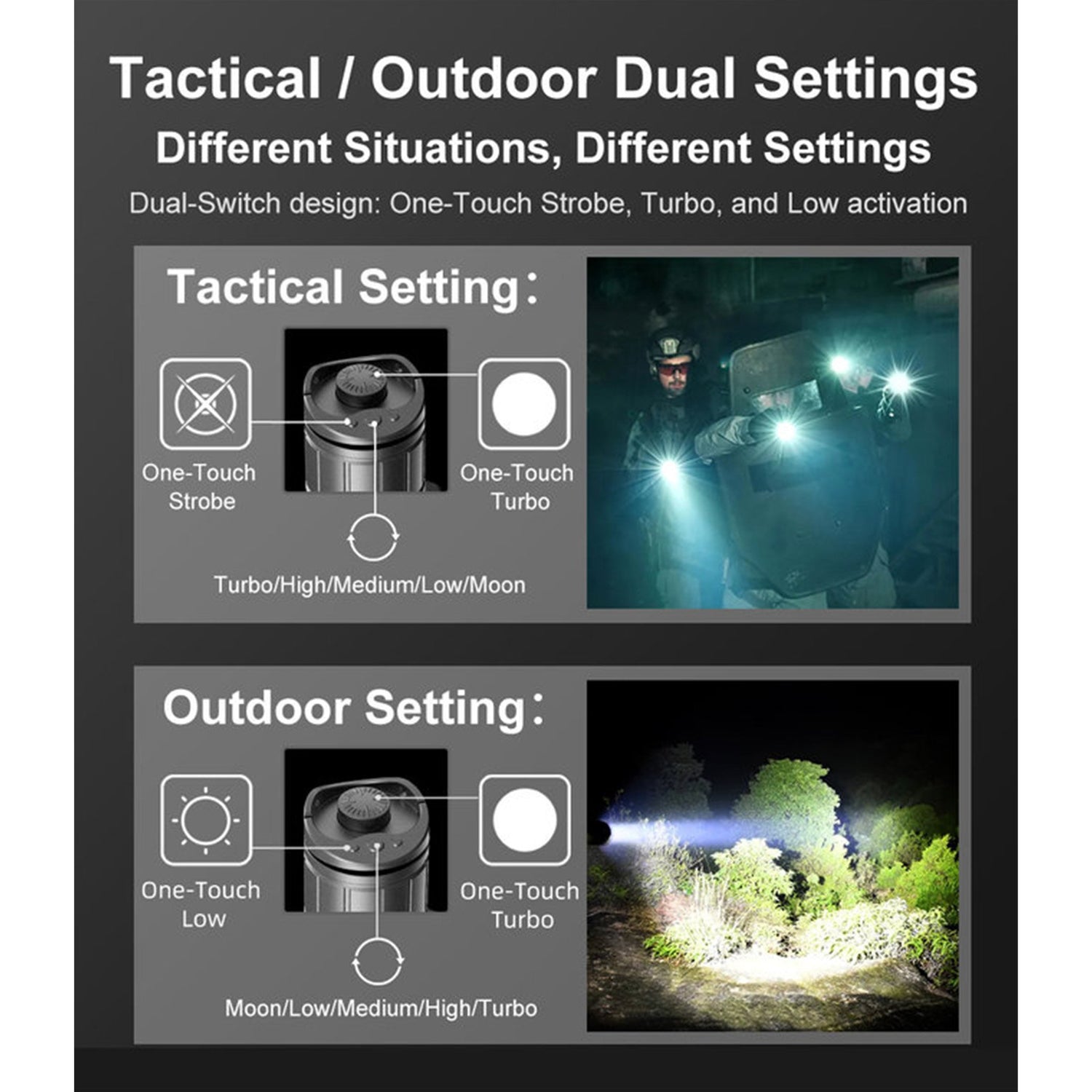 Die Klarus XT21X Pro bietet verschiedene Beleuchtungsmodi, welche sich einfach umschalten lassen. Die speziellen Funktionen wie der Strobe Modus oder der SOS Modus bieten zusätzlich Sicherheit und sind besonders im Einsatzbereich wertvoll.<