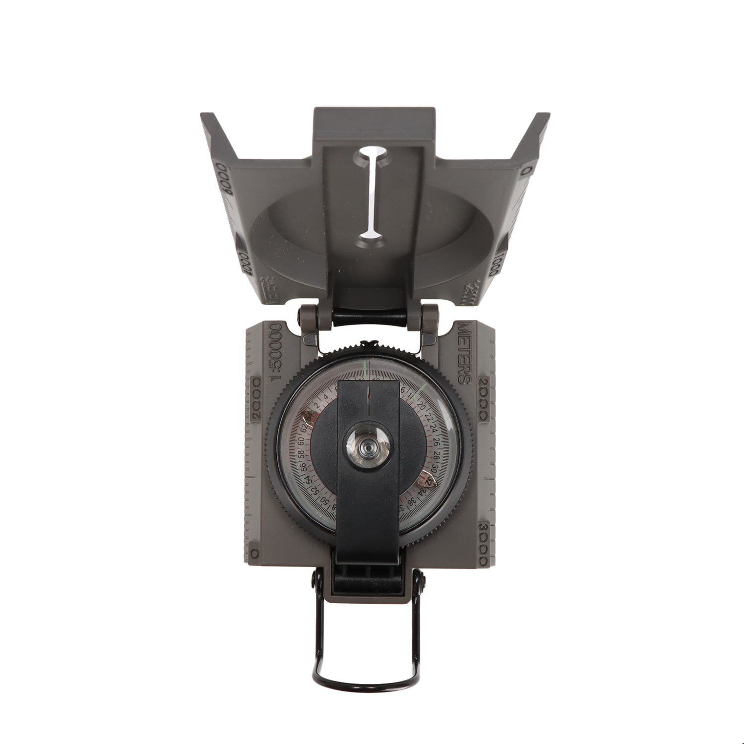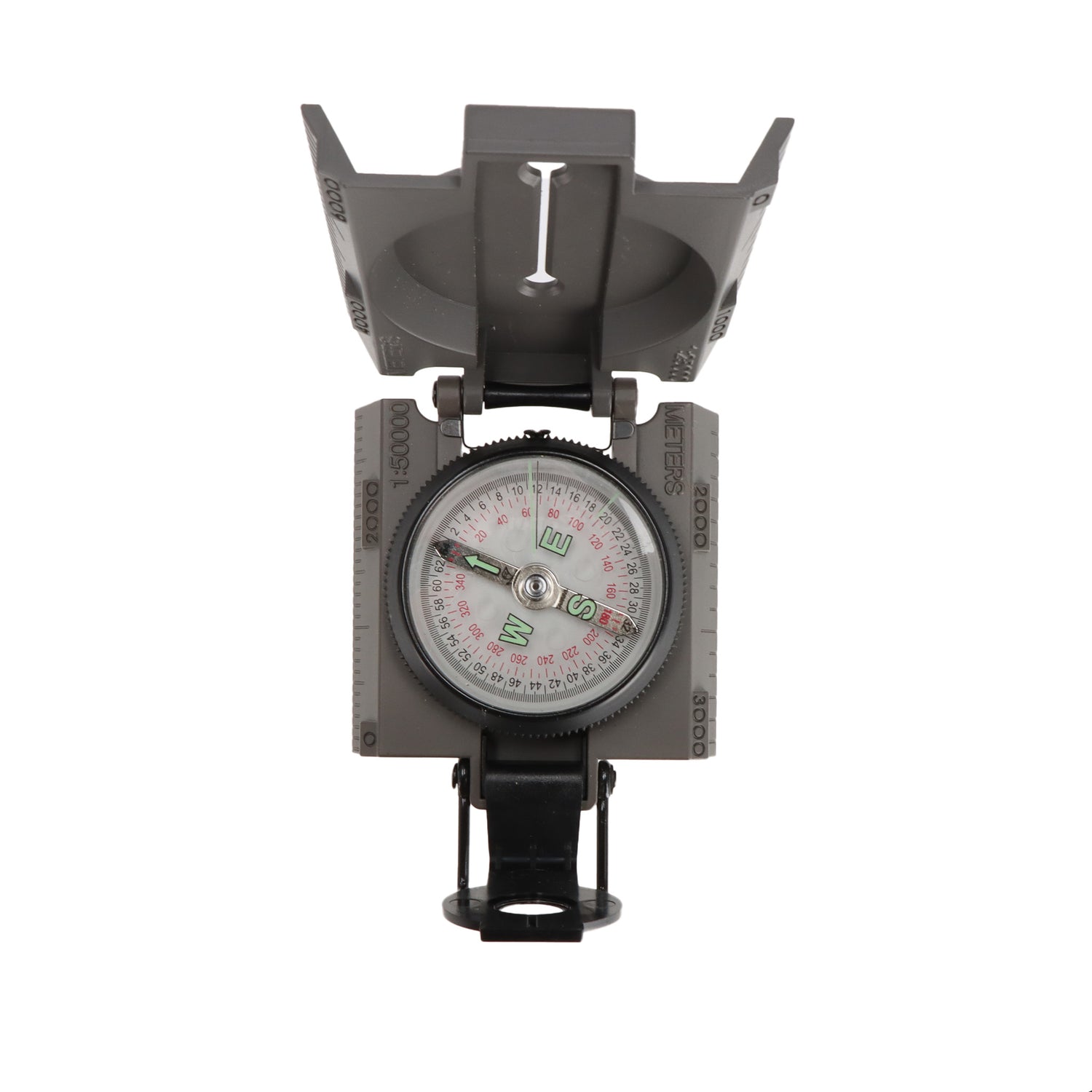 Der Kompass verfügt über eine LED-Beleuchtung und ein Vergrößerungsglas im Sucher, die eine präzise Navigation ermöglichen. Das leuchtende Ziffernblatt ist auch bei schlechten Lichtverhältnissen gut ablesbar.
