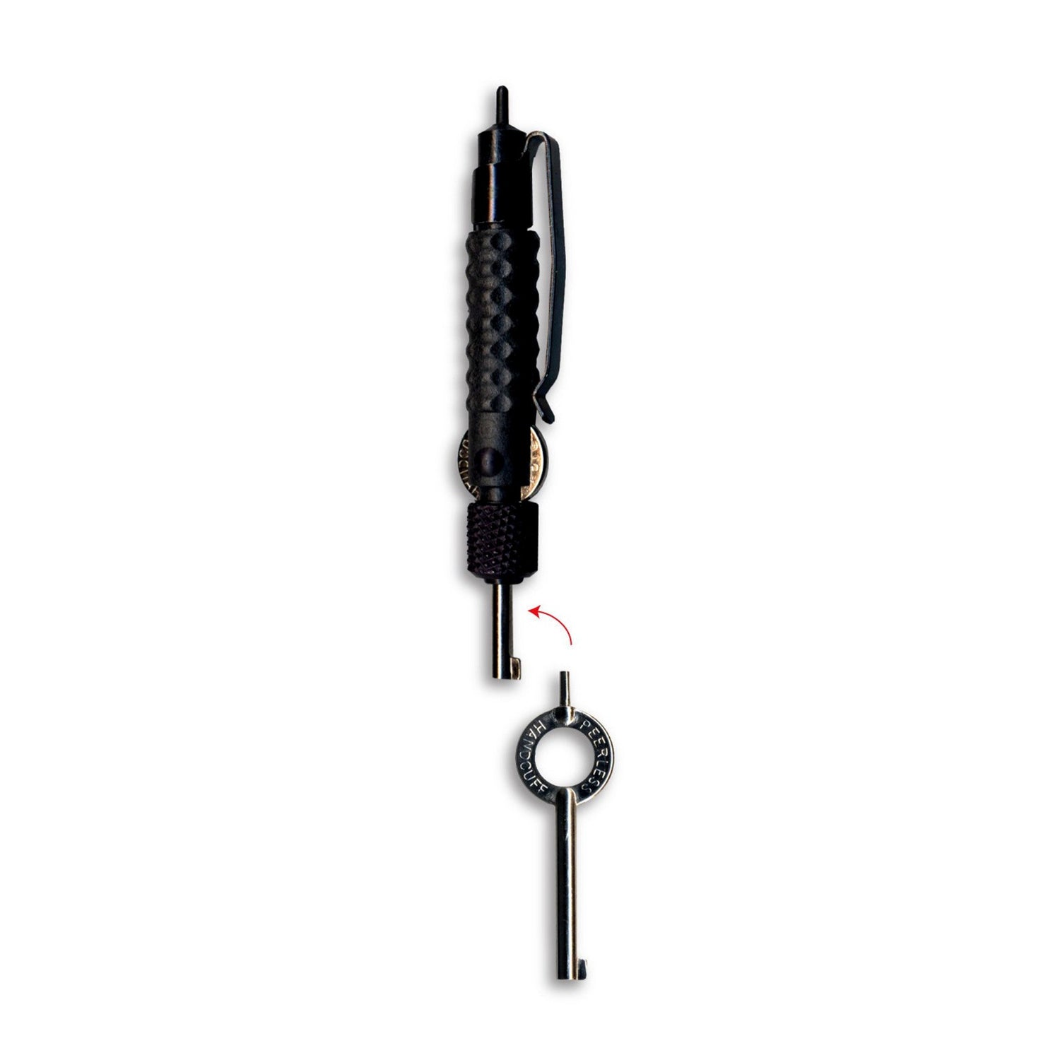 Die innovative Konstruktion dieses Schlüssels zeichnet sich durch seine 3,5-Zoll lange Verlängerung aus, die bequem in der Tasche verstaut werden kann. Eine einfache Handhabung wird dadurch gewährleistet, dass der Schlüssel schnell und einfach zugänglich ist, wenn er benötigt wird. Dieses Modell wird mit zwei Standard-Handschellenschlüsseln geliefert, die sicher in den Körper des Werkzeugs eingeschoben werden können.